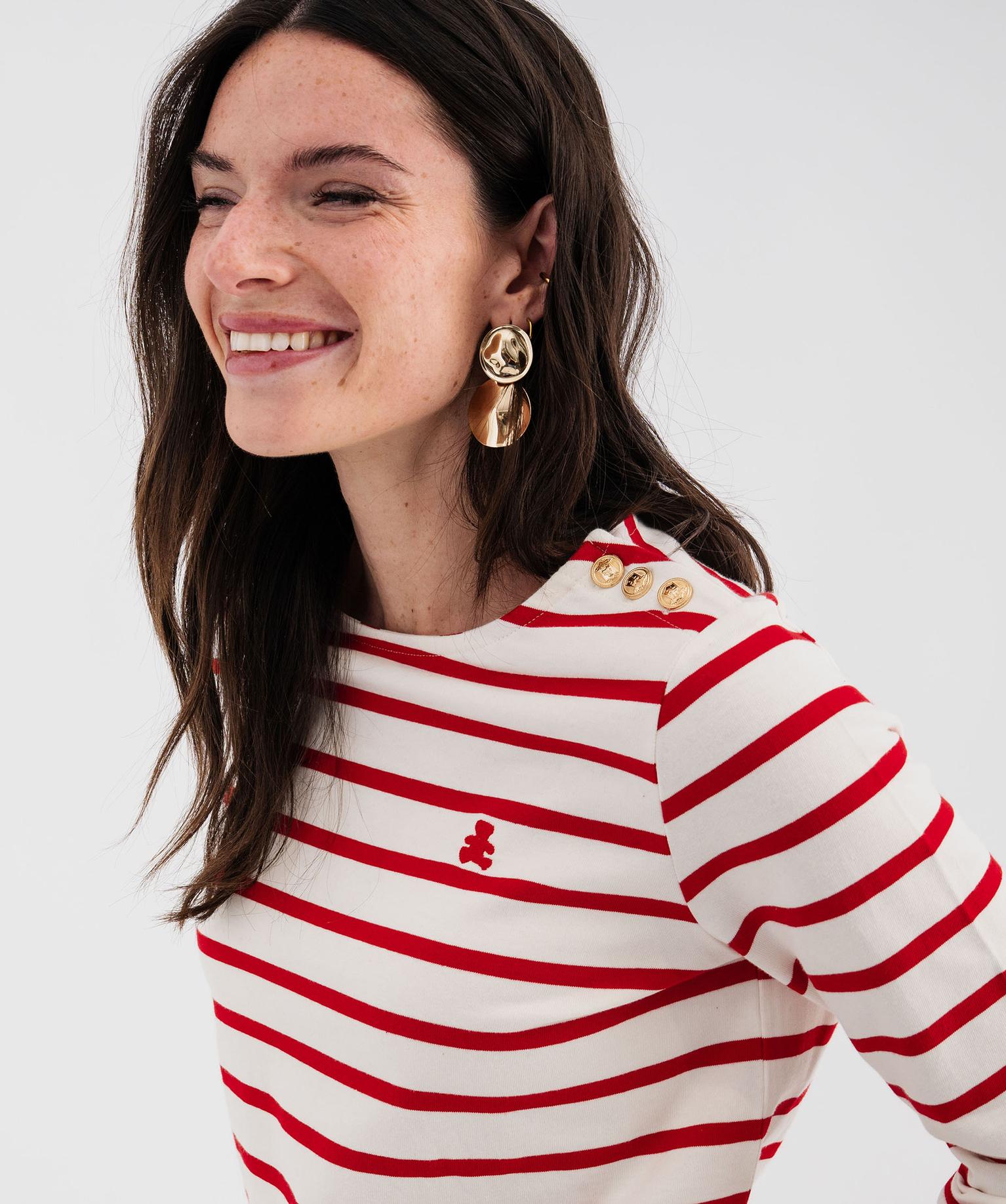 Tee-shirt manches longues rayé marinière femme - LuluCastagnette rouge