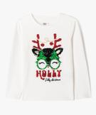 Tee-shirt manches longues spécial Noël fille blanc chine