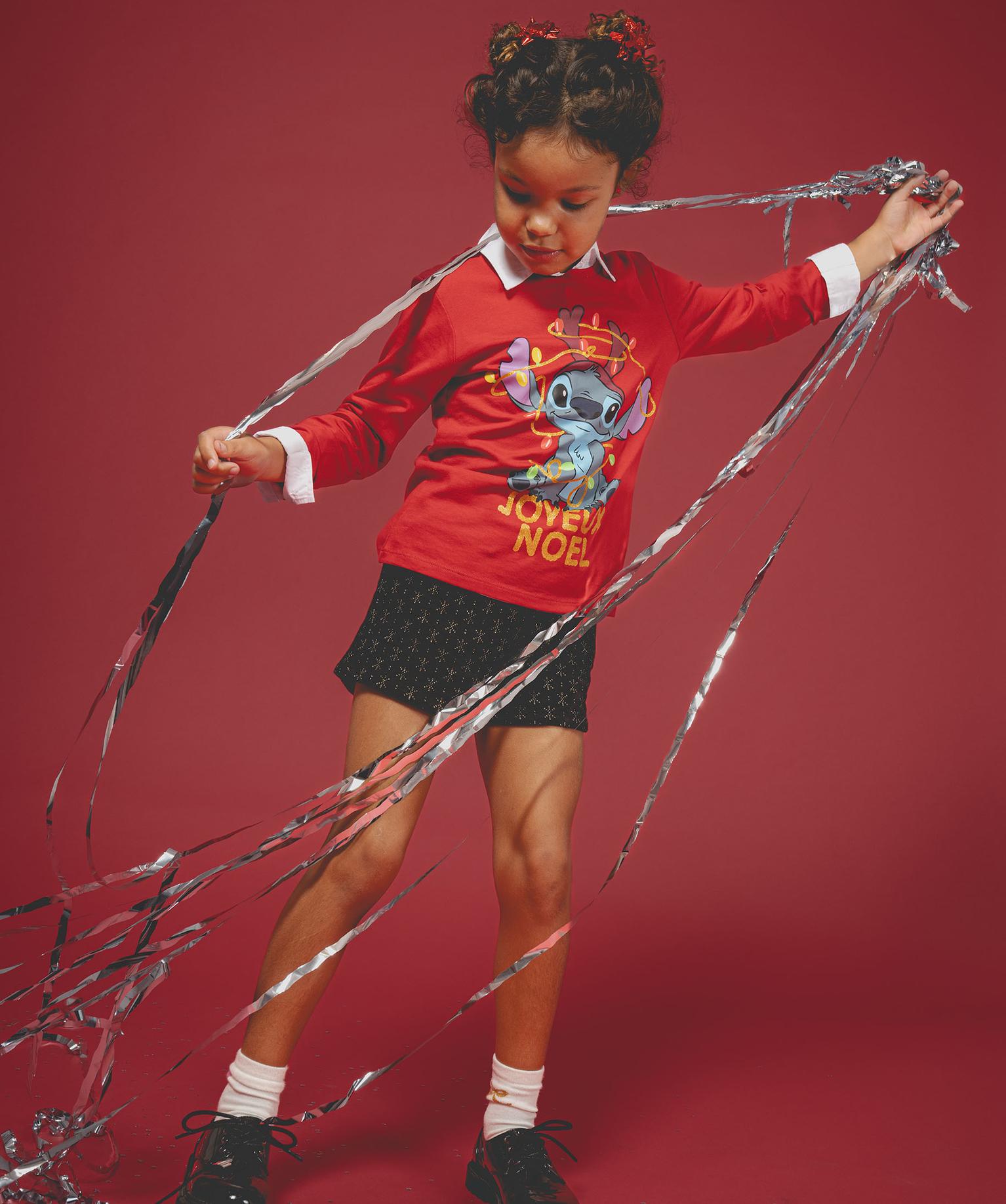 Tee-shirt manches longues spécial Noël motif Stitch fille - Disney rouge