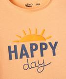 Ajoutez une touche de peps aux tenues des petites princesses avec ce tee-shirt aux couleurs vitaminées, orné d’un motif ensoleillé et d’une inscription positive. Un tee-shirt bébé fille à la coupe ample, accentuée par des manches ultra courtes, à associer à une jupe en jean et une paire de tennis en toile. Il possède un col rond souligné par un biais, avec boutons sur l’épaule pour faciliter l’habillage.