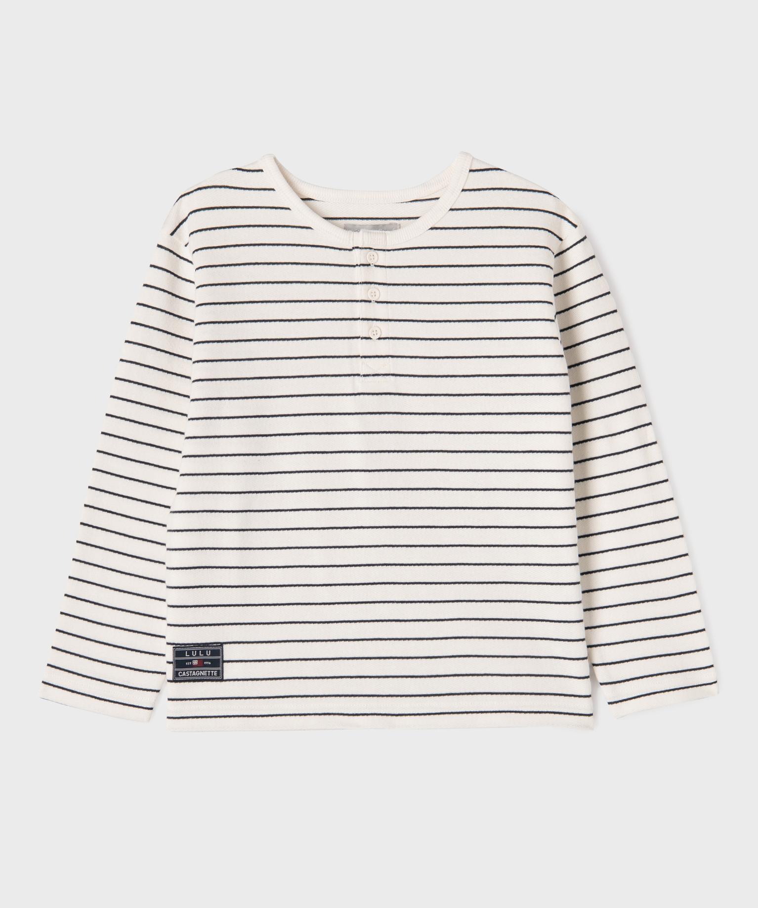 Tee-shirt rayé à col tunisien garçon - LuluCastagnette blanc