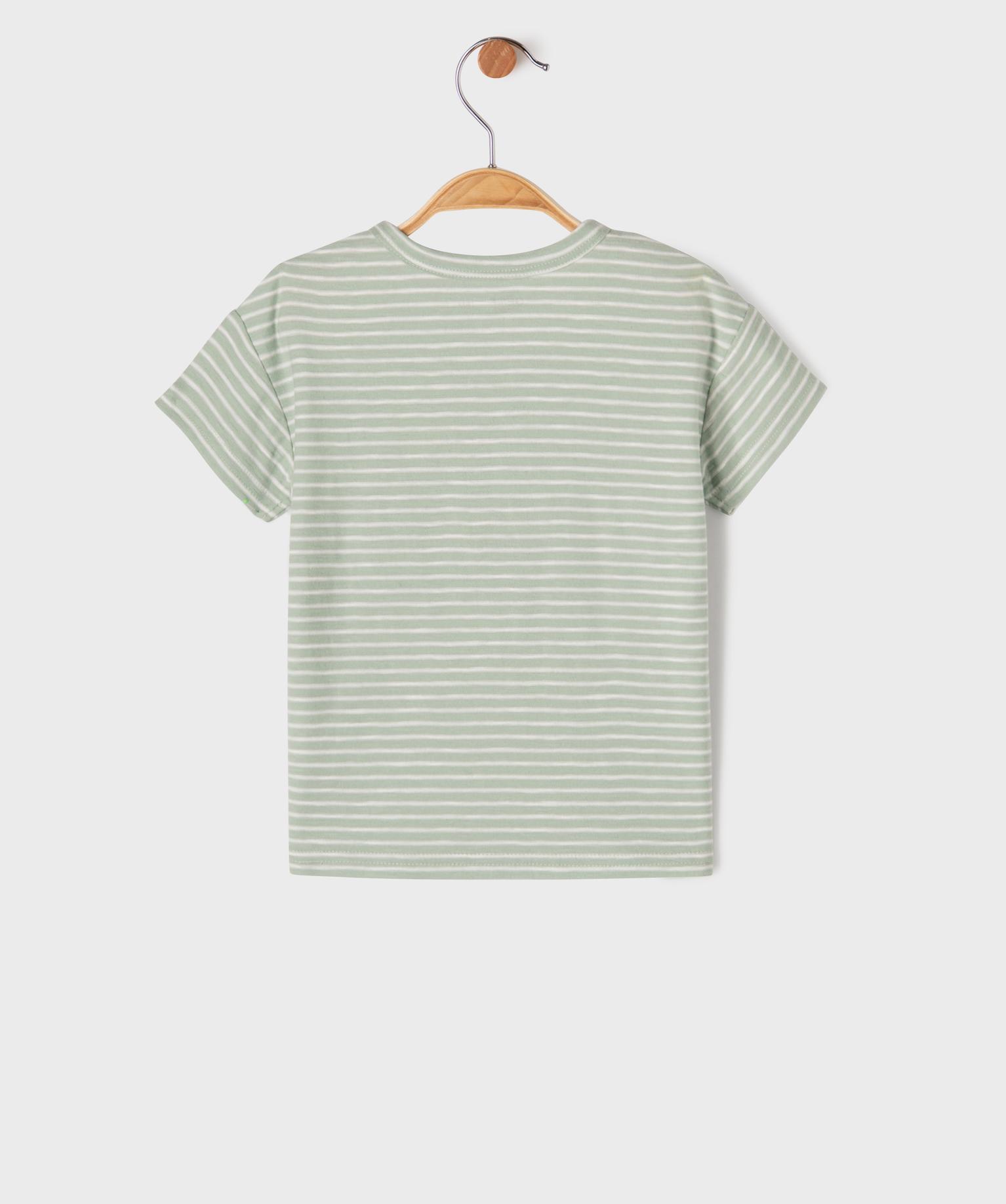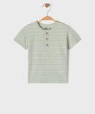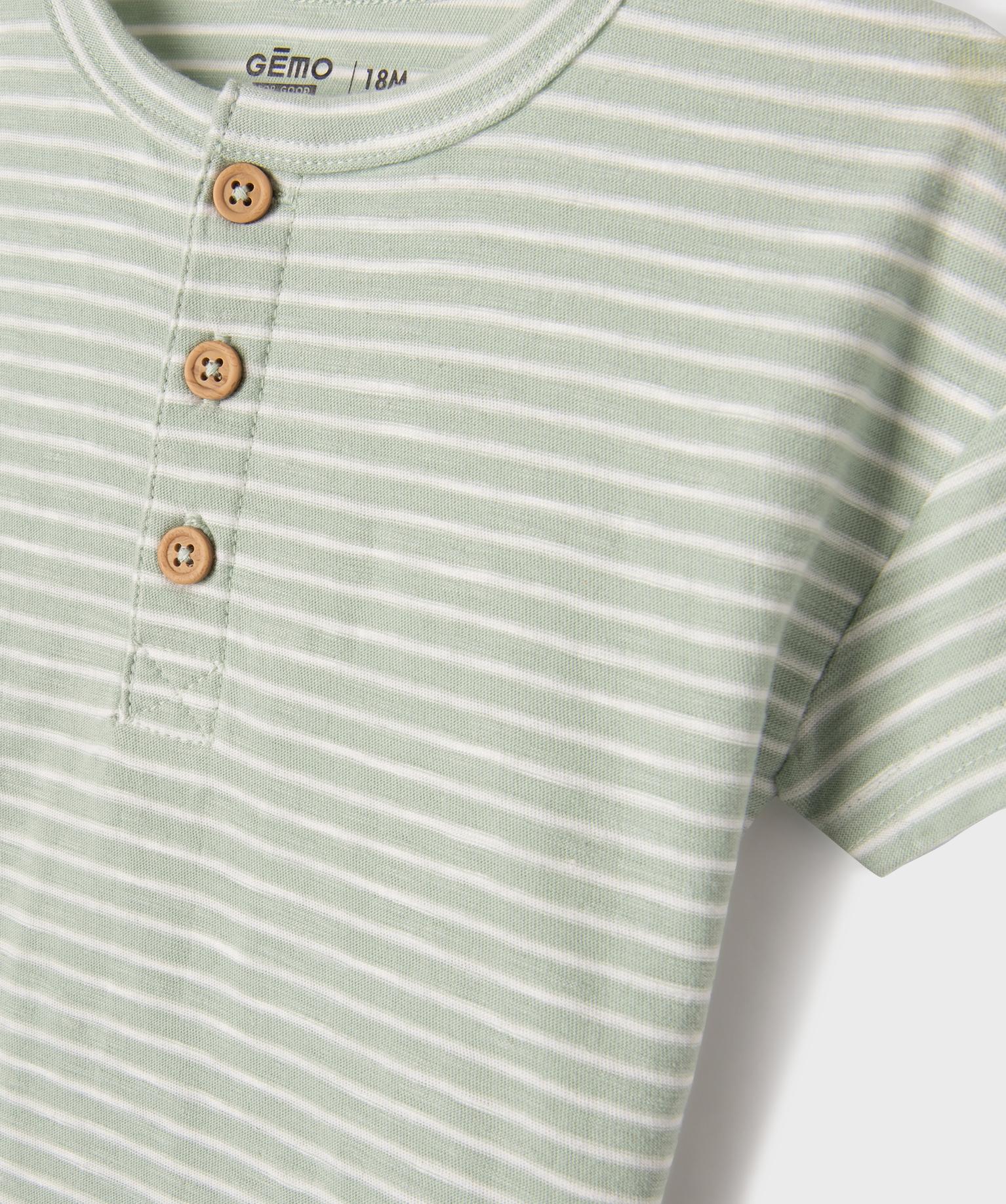 Tee-shirt rayé à manches courtes et col tunisien bébé garçon vert