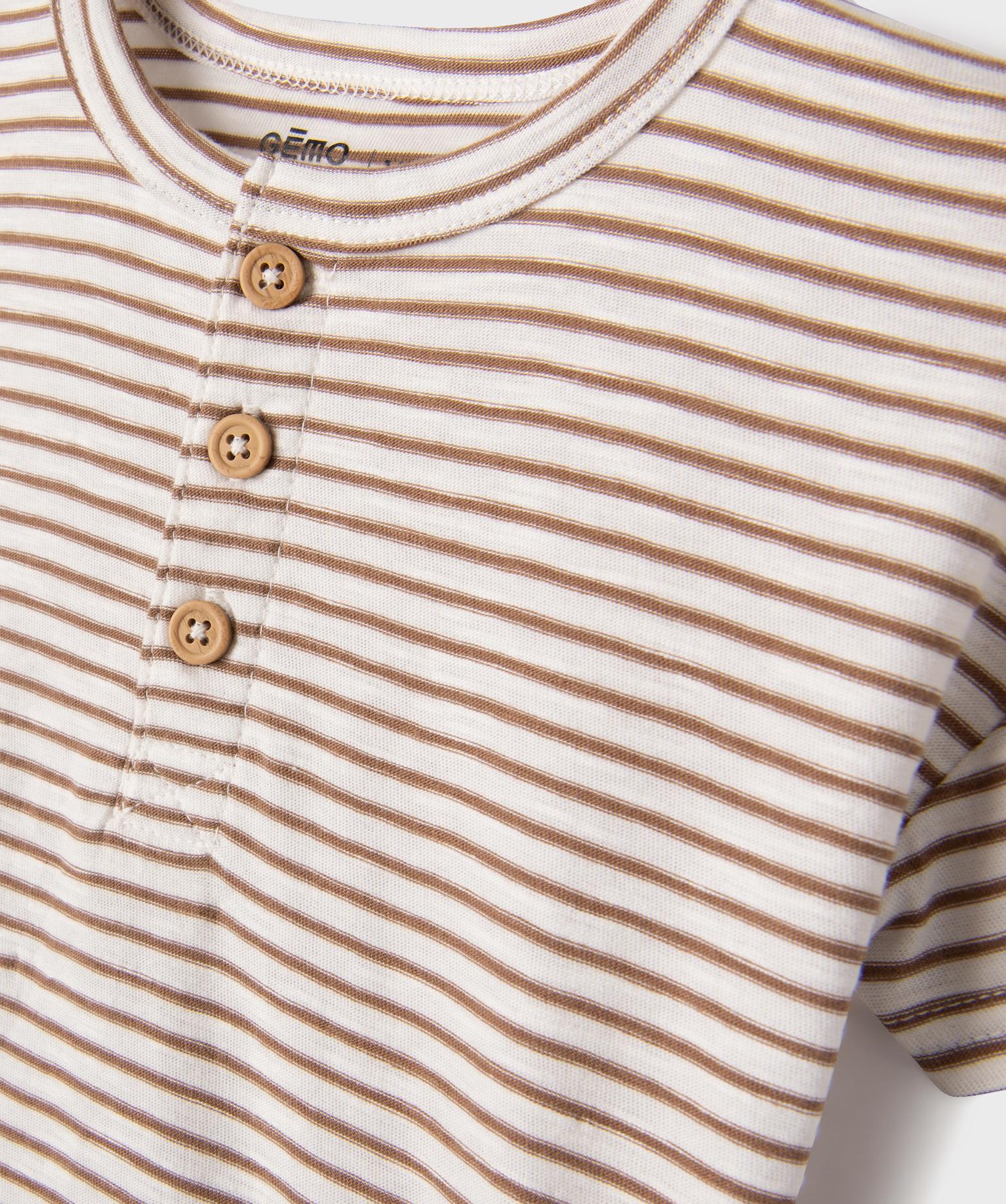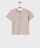 Tee-shirt rayé à manches courtes et col tunisien bébé garçon ecru