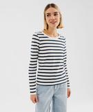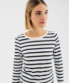 Le tee-shirt rayé reste une pièce phare du dressing féminin. Il apporter un esprit marin à toutes les tenues et trouve toujours sa place dans les looks de l’été. Ce tee-shirt femme 100% coton offre un confort unique et une grande douceur. Il possède un col rond souligné par un biais. Ce tee-shirt à manches longues est un basique incontournable à porter avec un jean et des baskets, comme avec une jupe patineuse.
