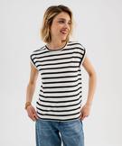 Tee-shirt rayé à manches ultra courtes femme[MISSING] noir