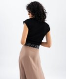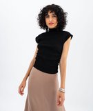 Ajoutez une touche de sophistication à vos jupes et pantalons avec cet élégant tee-shirt sans manches doté d’un col montant et de fronces sur les côtés. Un tee-shirt femme confectionné dans une maille extensible à l’aspect texturé, particulièrement confortable, qui mixe une allure loose et un léger effet drapé à la taille. Un haut de soirée à associer à un pantalon de costume ou une jupe crayon et une paire d’escarpins à talon.