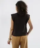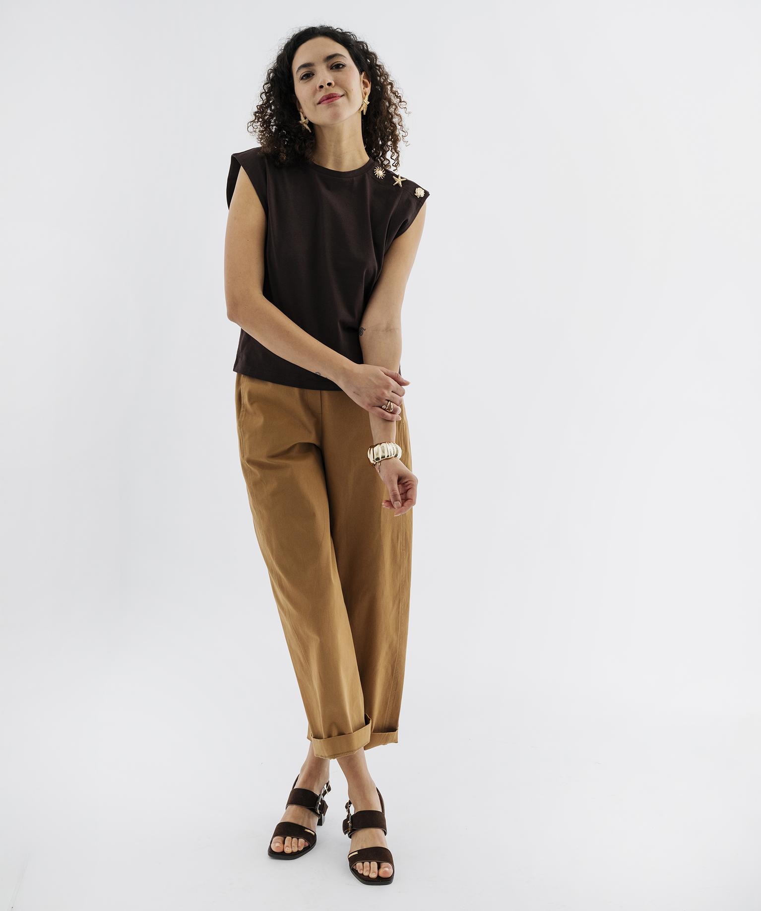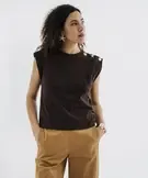 Tee-shirt sans manches avec boutons fantaisie sur l’épaule femme marron fonce