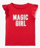 Pour illuminer les looks des filles Gémo présente un magnifique tee-shirt sans manches mais doté de volants aux emmanchures. Un tee-shirt fille avec large col rond souligné par un biais qui affiche une coupe droite confortable. Ce tee-shirt à volants est orné d’une inscription girly mise en lumière par des paillettes ou des strass en fonction des coloris. Il se porte avec une jupe à volants, une jupe en jean ou un pantalon en toile.