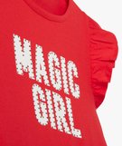 Tee-shirt sans manches avec inscription pailletée fille rouge