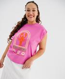 Tee-shirt sans manches avec motif sur l’avant femme grande taille rose