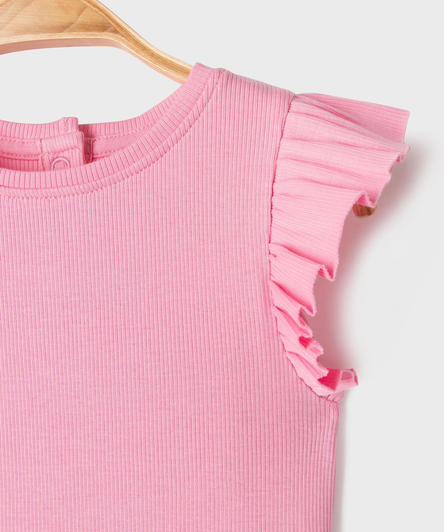 Tee-shirt sans manches avec volants sur les épaules bébé fille rose