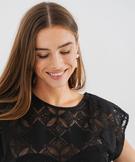 Tee-shirt sans manches en dentelle ajourée coupe loose femme noir