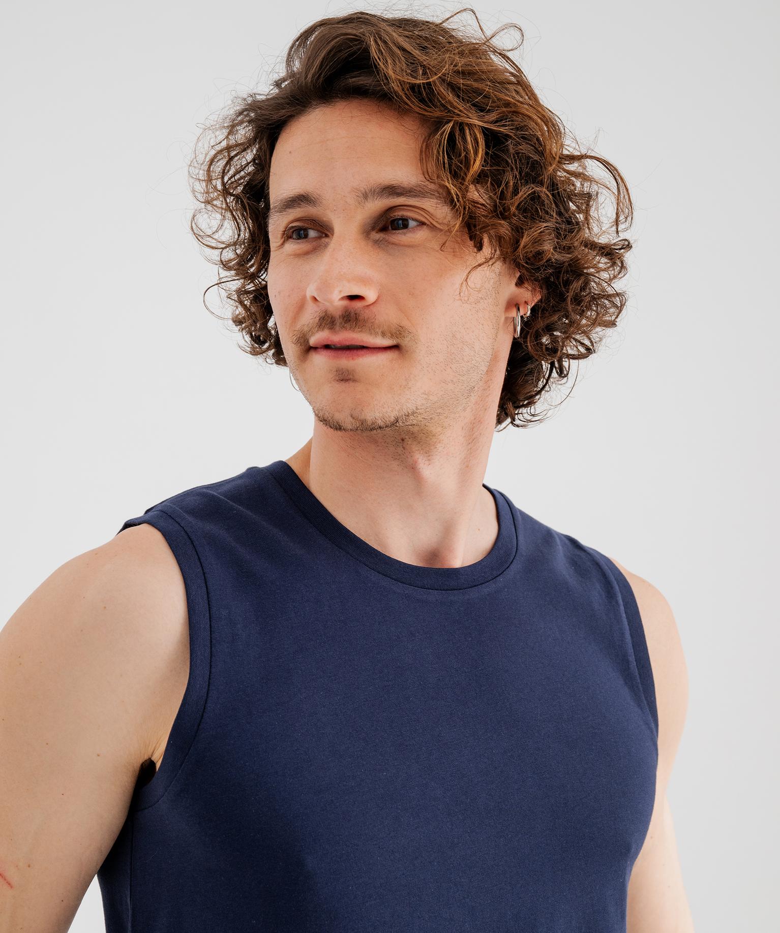 Tee-shirt sans manches en jersey de coton homme bleu fonce