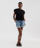 Ce tee-shirt en maille côtelée séduit par sa coupe oversize et son allure contemporaine. Avec ses épaules tombantes, ses manches courtes et ses finitions biais, il structure subtilement la silhouette. Confectionné en coton, coton recyclé, avec une touche d’élasthanne, il allie douceur et confort. Un tee-shirt femme au design unique à porter aussi bien avec un pantalon slim qu’avec un short en jean.