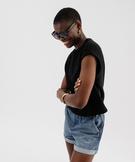 Tee-shirt sans manches en maille côtelée coupe oversize femme noir