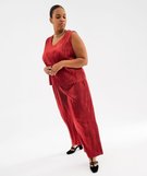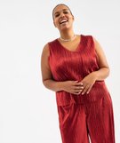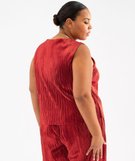 Tee-shirt sans manches en maille fluide et plissée femme grande taille rouge
