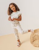 Cool attitude pour ce tee-shirt fille ! Un tee-shirt sans manches, avec les emmanchures légèrement tombantes pour un effet loose et pour couvrir le haut des bras. Le tee-shirt se distingue aussi par son large motif fantaisie façon crayonné, très original. Un tee-shirt à porter rentré dans la ceinture d'un short ample ou par-dessus un legging court. Col rond en fin bord-côte.
