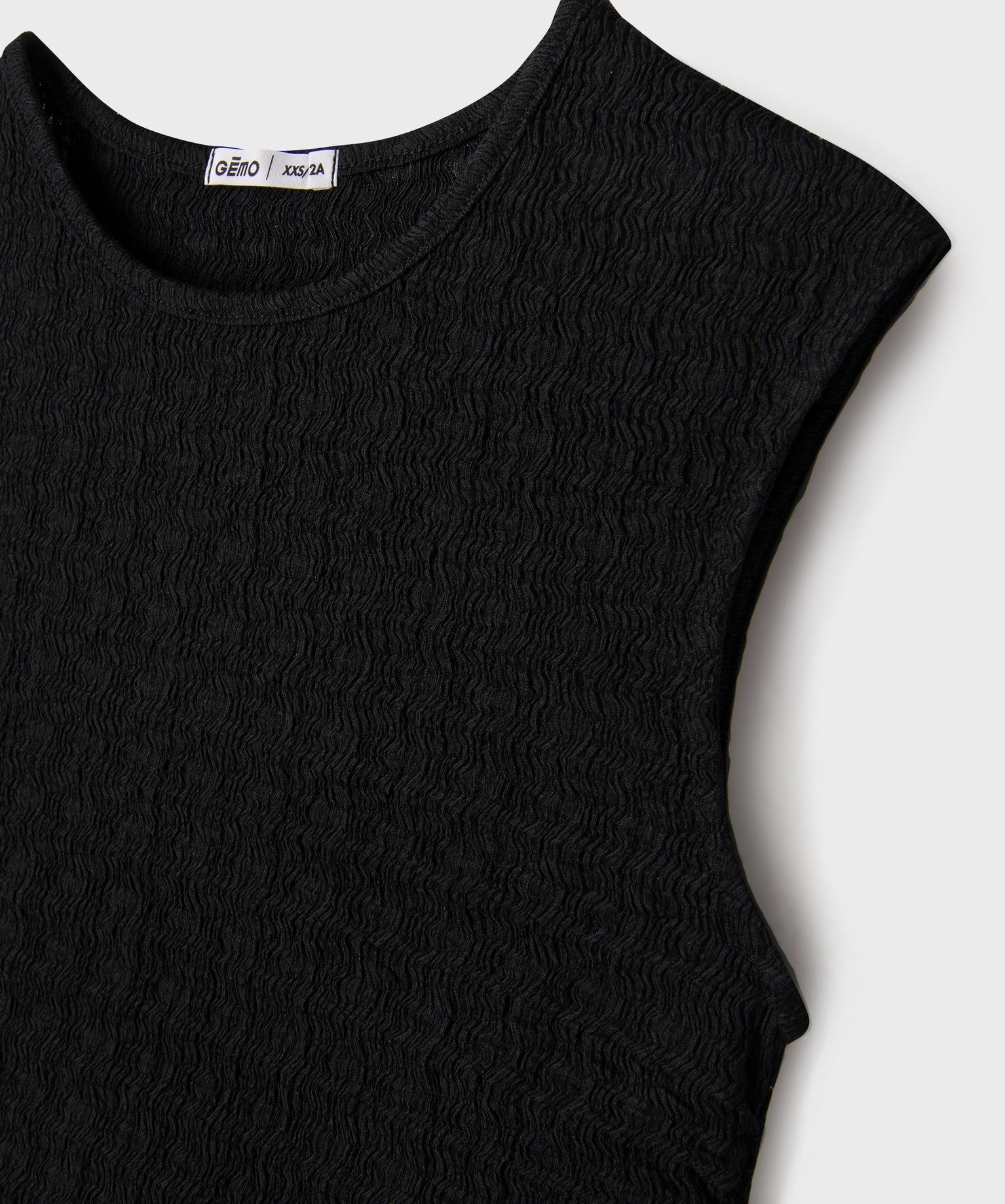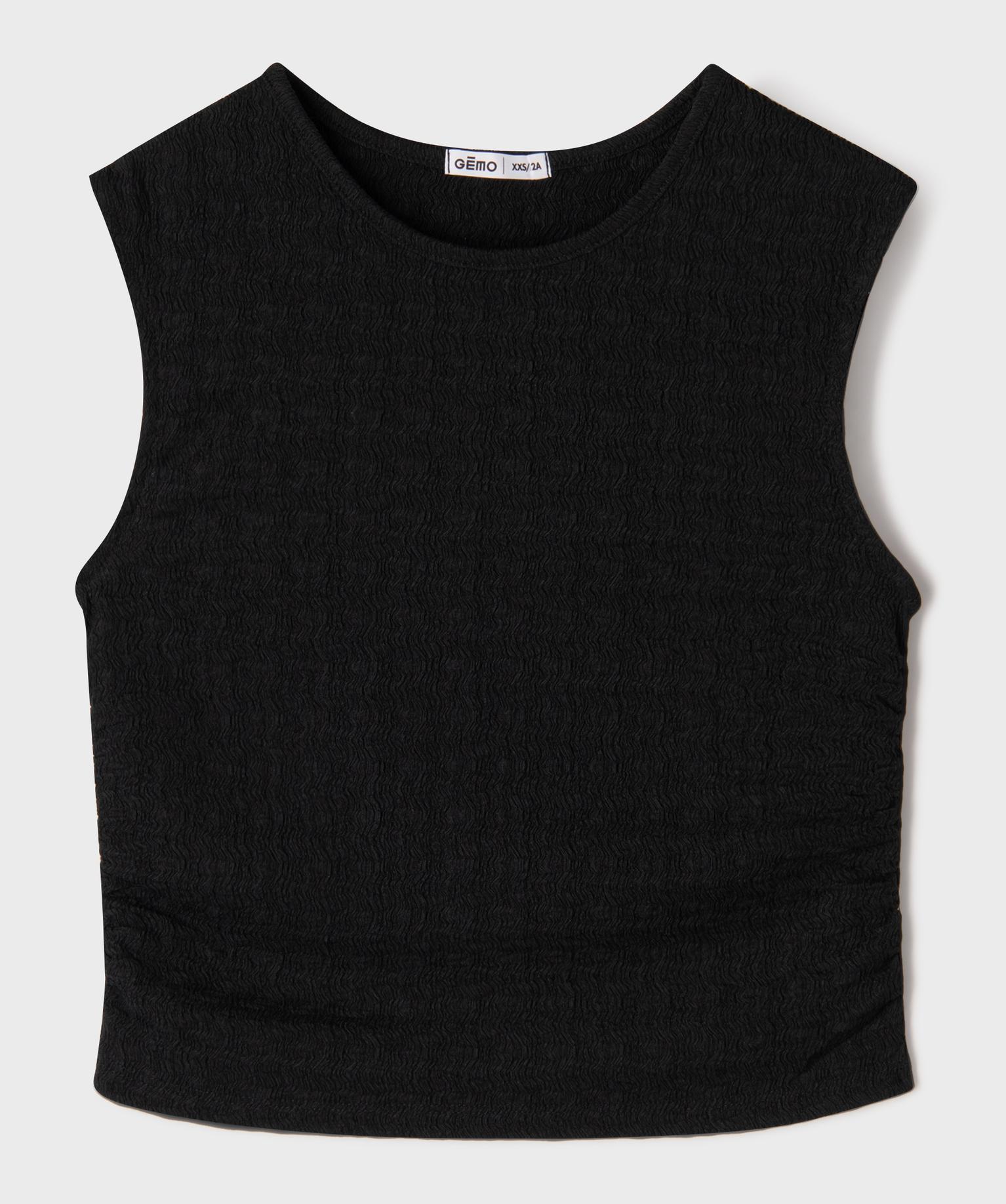Tee-shirt sans manches texturé et cintré fille noir