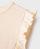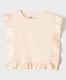 Laissez-vous charmer par ce tee-shirt sans manches fille au style original. Ses volants sur les côtés et dans le bas apportent une touche de fantaisie et de charme unique. Grâce aux empiècements latéraux, le tee-shirt offre une coupe ample et fluide pour une liberté de mouvements totale. À bombiner avec une jupe short toute simple ou un short à rayures. Col rond finition biais.
