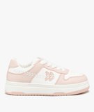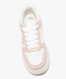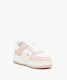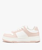 Tennis bicolores à semelle plateforme et broderie femme rose vif