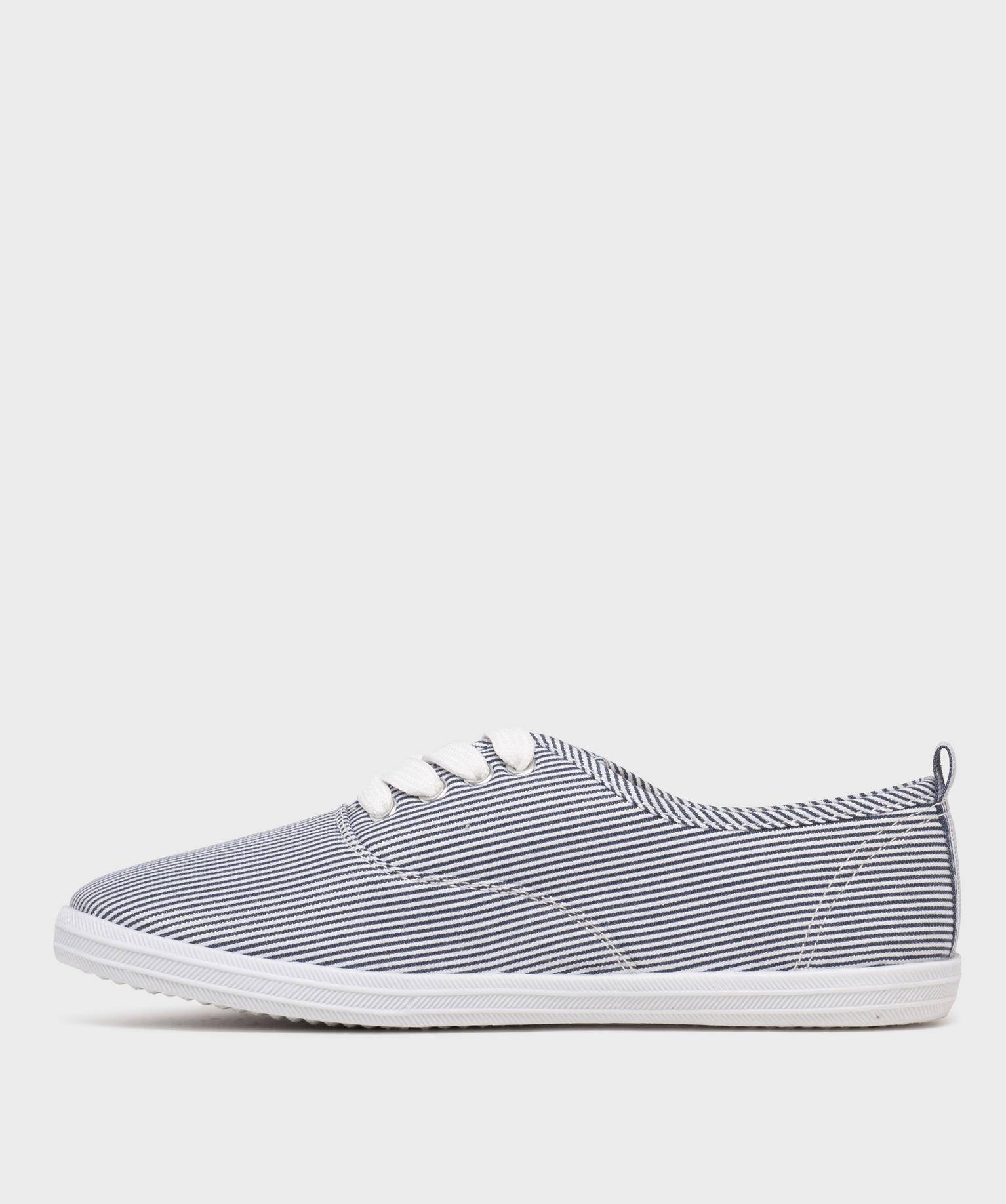 Tennis en toile à rayures femme - Follow Me bleu fonce