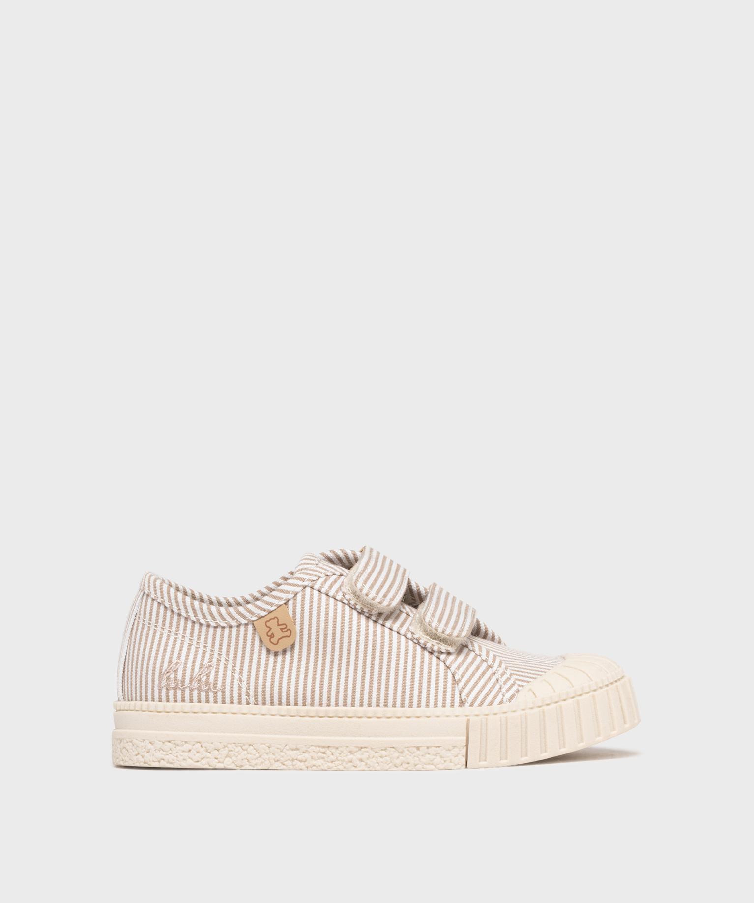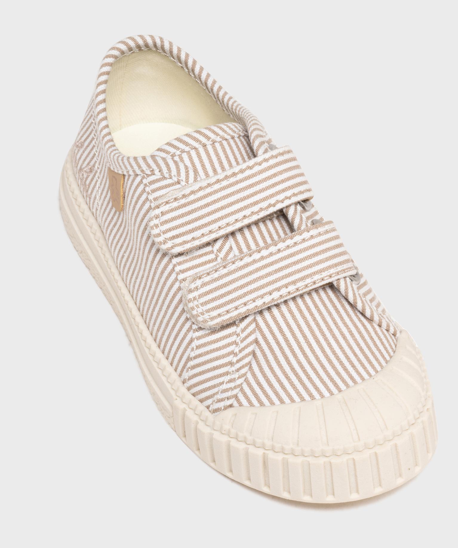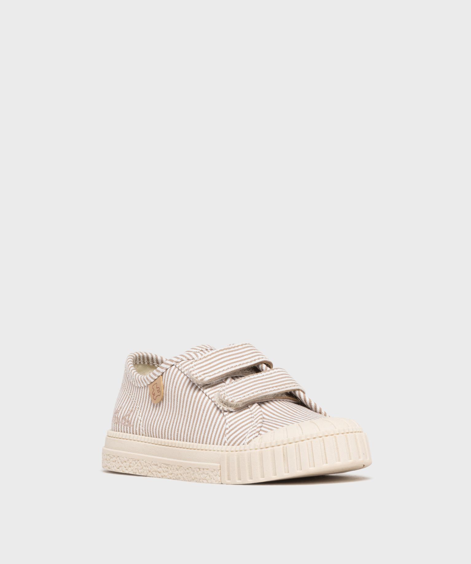 Tennis en toile à scratch et bout recouvert garçon - LuluCastagnette beige