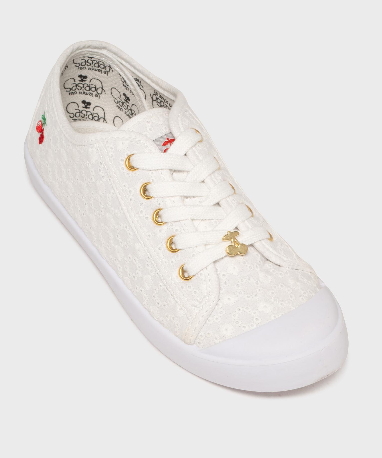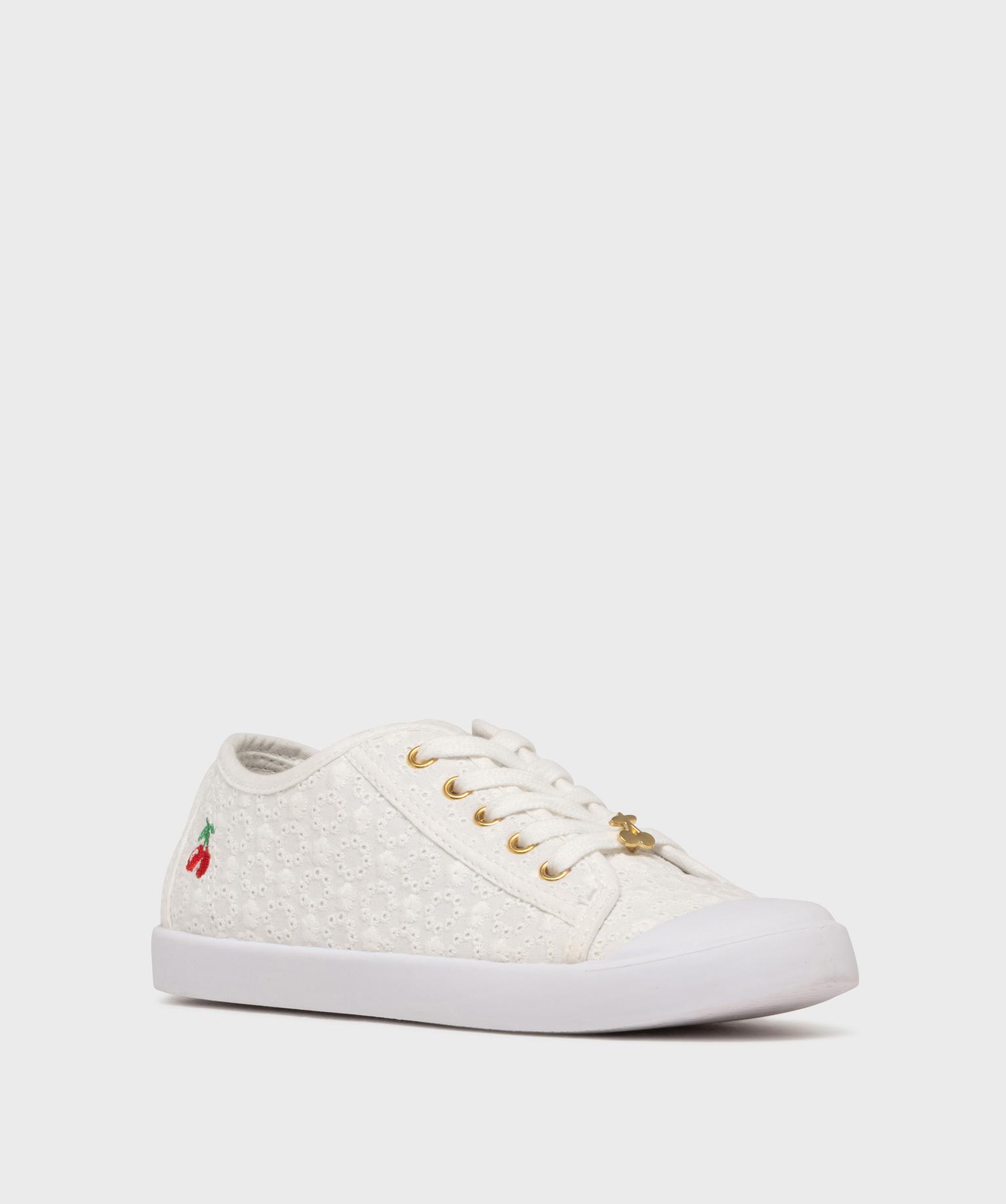 Laissez-vous charmer par les tennis en toile Shoes by Le Temps des Cerises ! Des baskets pour femme légères, montées sur une fine semelle, idéales pour la belle saison ! Unies, fleuries ou en broderie selon le modèle choisi, ces tennis en toile donnent tout de suite une allure casual, féminine et romantique à vos tenues : short en toile, robe légère ou jupe longue fendue ! On adore la semelle blanche, fine et lisse, qui vient recouvrir le bout du pied, les cerises brodées sur le talon et le petit bijou de lacets en métal. Fermeture lacets plats 5 œillets. Semelle intérieure moelleuse. Logo brodé sur la languette. Semelle 1,8 cm.