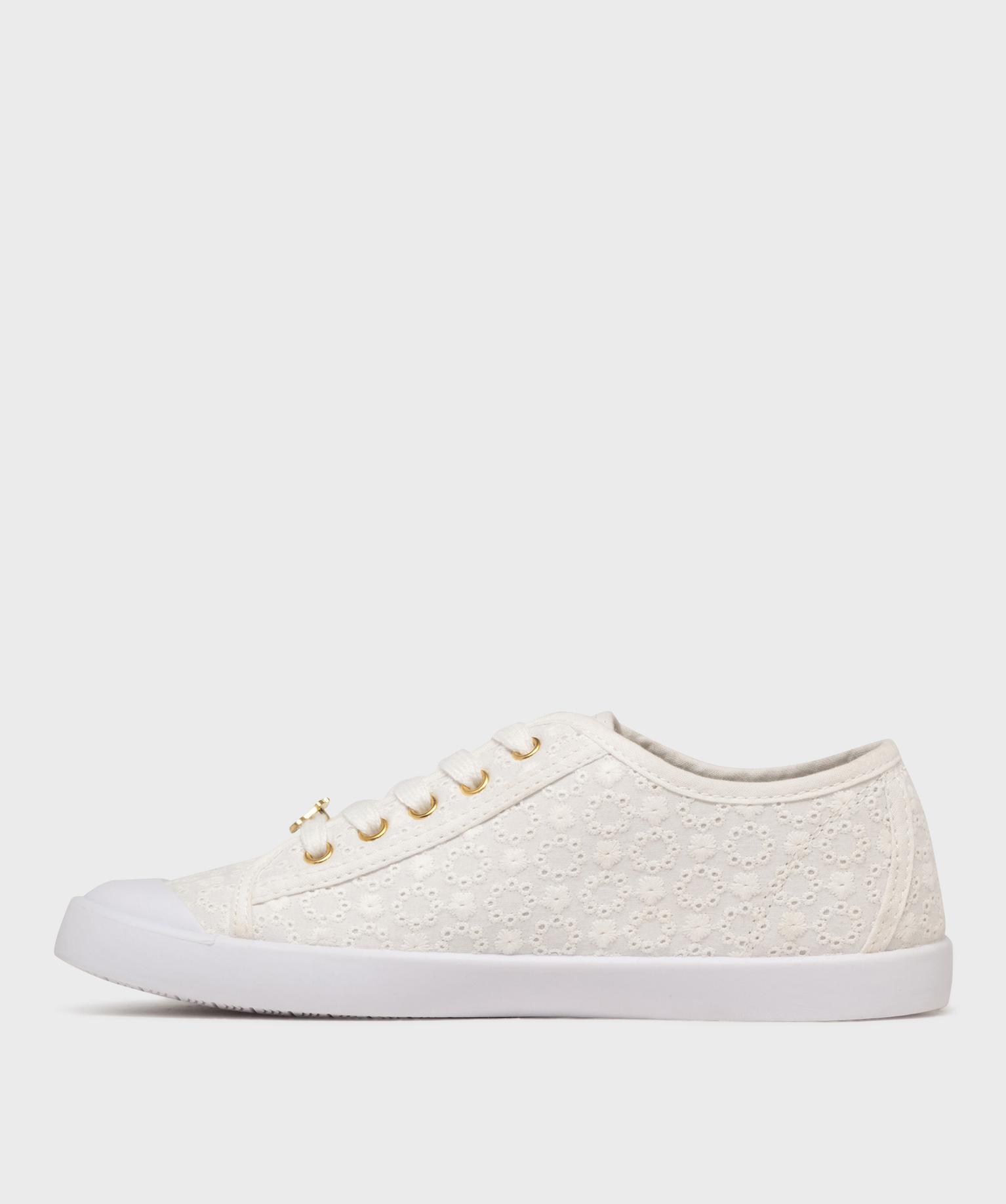 Tennis en toile à semelle fine et bout couvert femme - Le Temps des Cerises blanc
