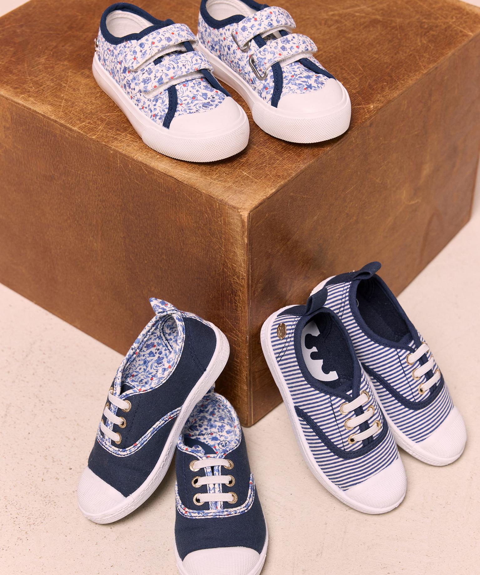 Ces tennis en toile LuluCastagnette jouent la carte du style léger et pratique. Avec leurs lacets élastiques, elles s’enfilent en un clin d’œil et s’adaptent aux journées actives. Deux versions au choix : un modèle uni rehaussé d’un biais et d'une doublure fleurie, ou un modèle rayé plein de fraîcheur. Les baskets fille sont également signées d'une petite breloque ourson Lulu en métal doré sur le côté. La semelle fine avec bout recouvert garde un esprit classique et discret. Une tirette à l’arrière facilite l’enfilage. La semelle intérieure moussée offre un accueil confortable.