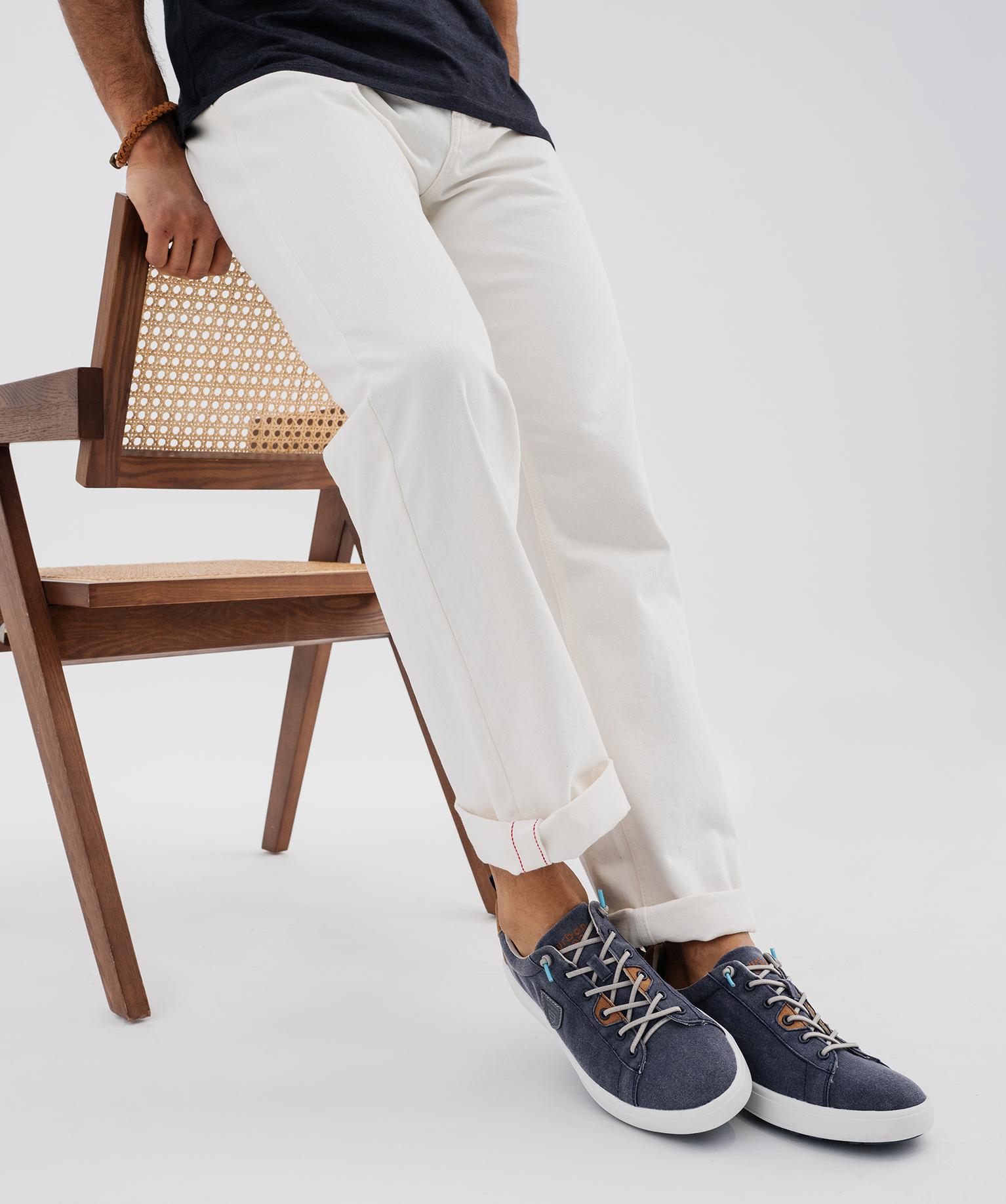 Légères et modernes, ces tennis en toile sont un essentiel du vestiaire masculin. Leur toile à la couleur subtilement délavée et les empiècements contrastants apportent aux chaussures une touche authentique et tendance. Les lacets ronds élastiques permettent un enfilage rapide et un maintien impeccable. Les baskets pour homme sont dotées d'une semelle moelleuse et d'un col rembourré. La semelle blanche contrastante dynamise la silhouette et ajoute une note sportive chic. Ces sneakers s’associent facilement à un chino et un polo pour une allure estivale, ou à un jean et une surchemise pour un look plus urbain.