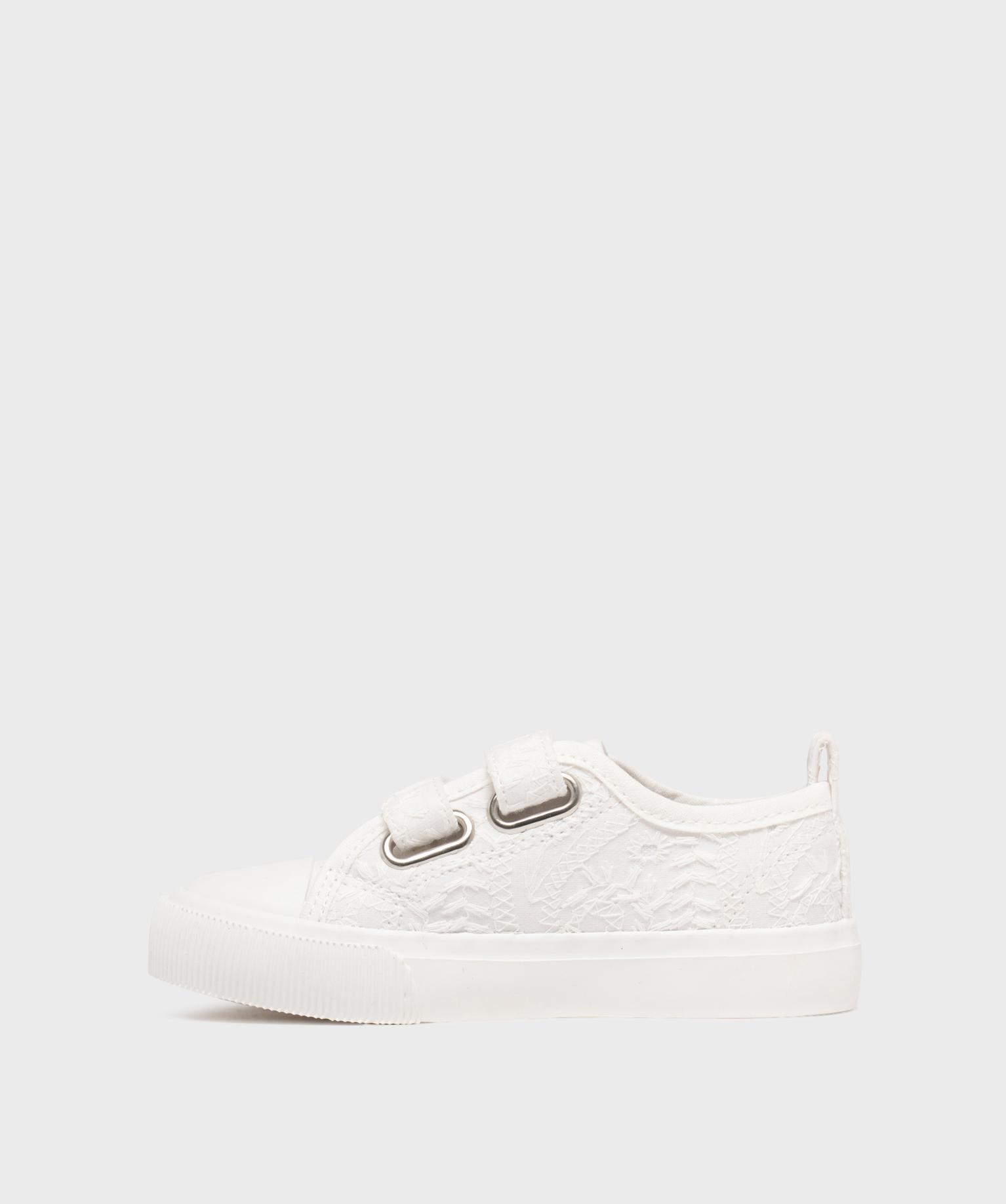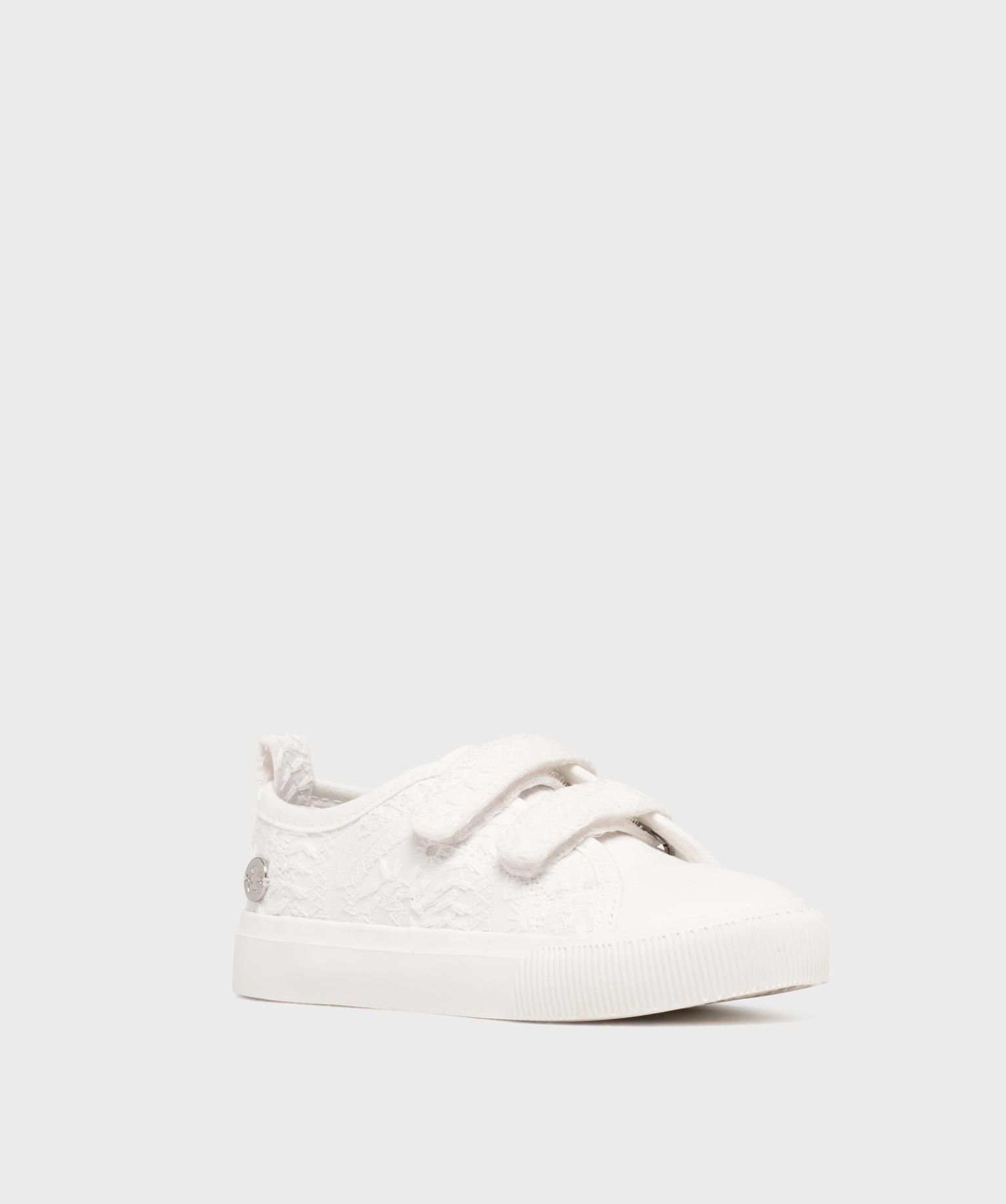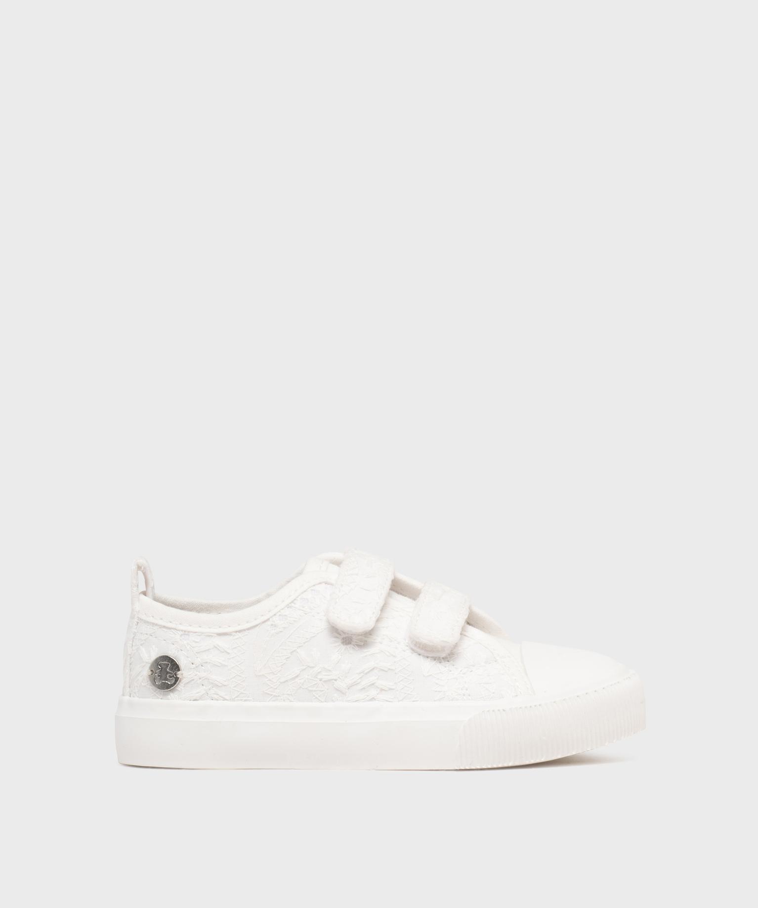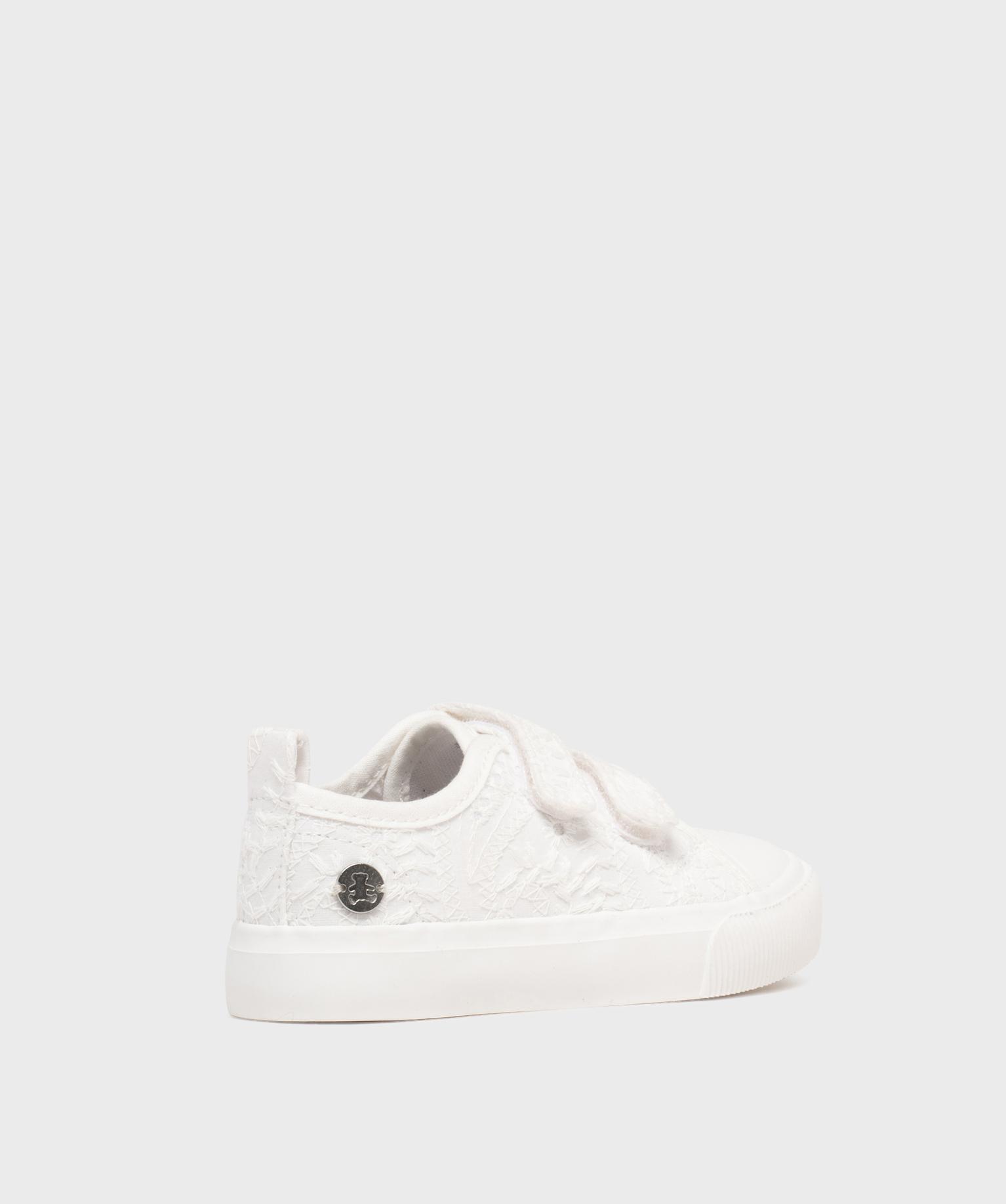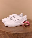 Tennis en toile brodée fermeture scratch fille - LuluCastagnette blanc