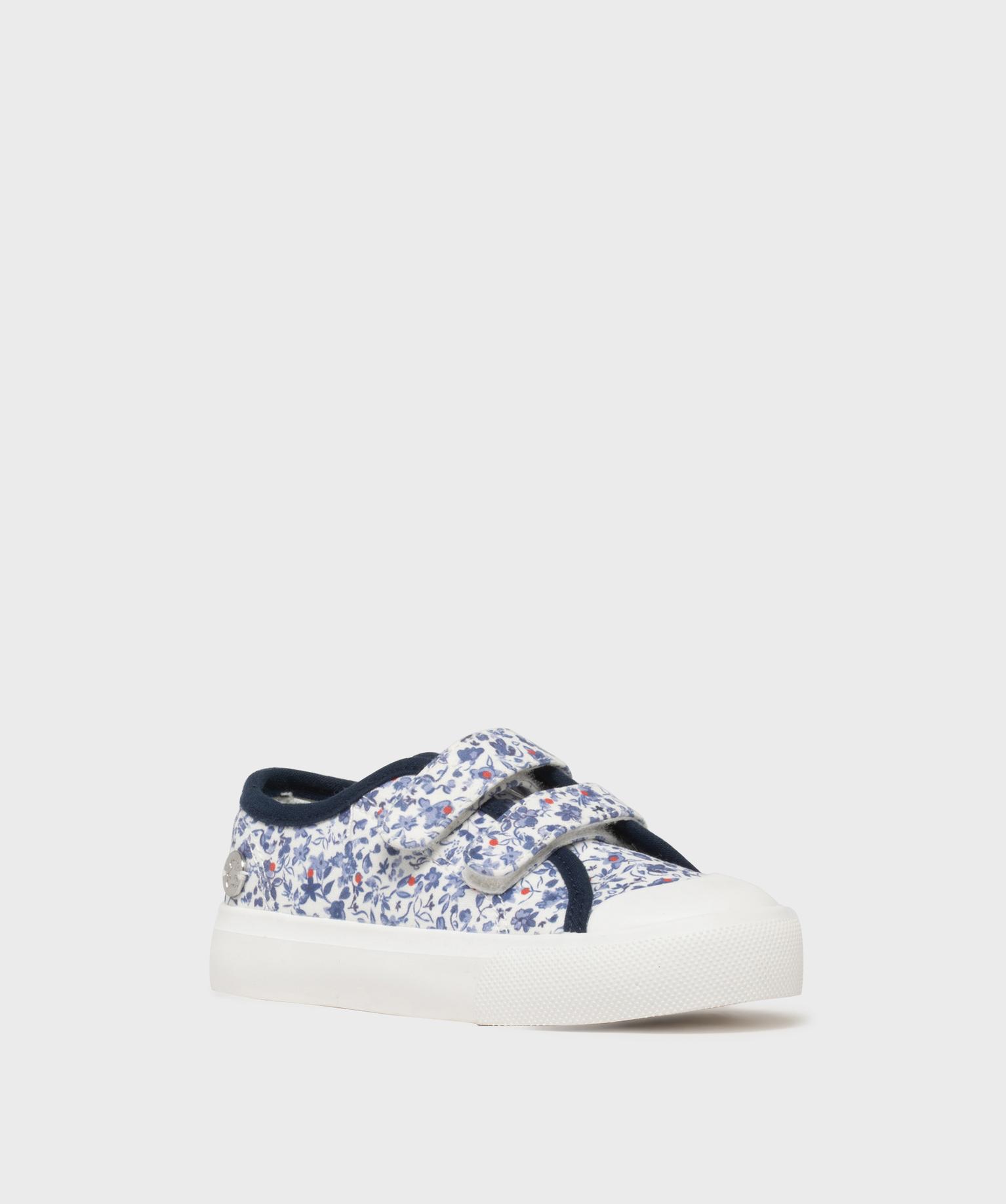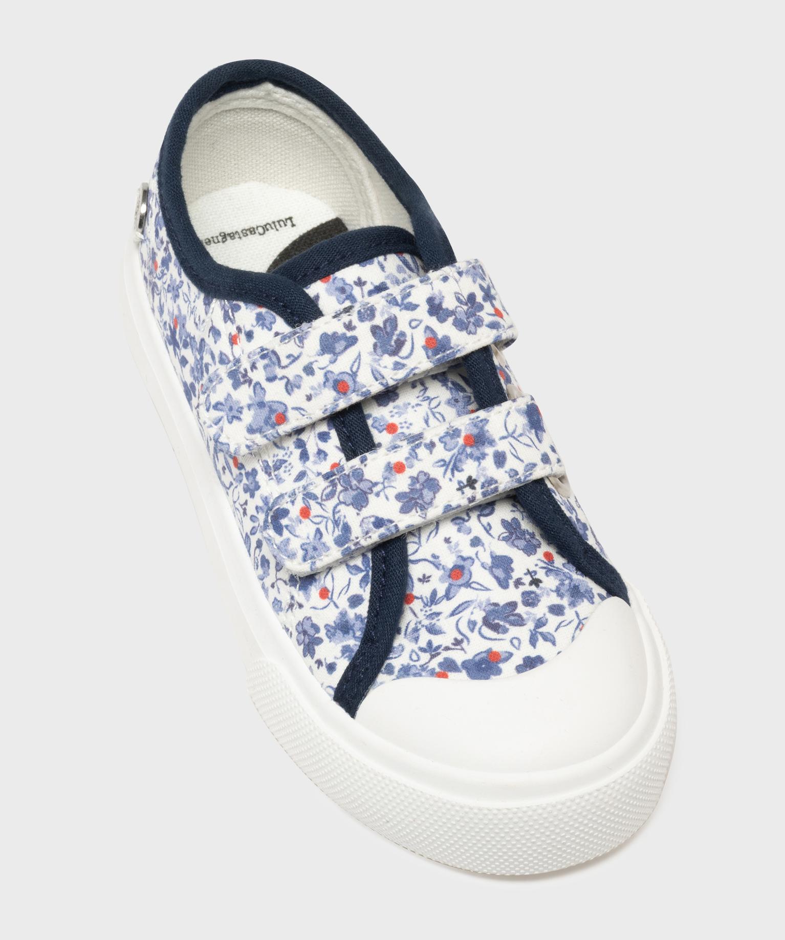 Tennis en toile fleurie à scratch et bout couvert fille - LuluCastagnette bleu