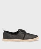 Tennis en toile pailletée à fines semelle en corde femme noir