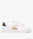 Apportez du glam à vos tenues décontractées grâce à ces tennis Kappa San Glimo ! Des tennis pour femme toutes simples, avec tige basse unie et laçage sur la longueur. La touche qui fait la différence, c’est la bande métallisée imprimée sur le côté. On retrouve la même teinte métallique sur le haut du contrefort et sur la languette, ainsi que des lacets bien girly… On adopte sans tarder ces baskets pour féminiser vos ensembles jeans + sweat ! Fermeture lacets plats 6 œillets.