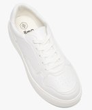Tennis femme unies à lacets et semelle épaisse blanc