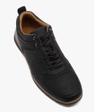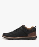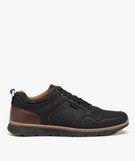 Chic, le mix de matières et de couleurs sobres pour cette tennis de ville ! Une association originale mais discrète qui apporte une note d’élégance à ces baskets pour homme. Le col rembourré est en textile chiné, le talon est confectionné dans une matière synthétique légèrement grainé, tandis que le reste de la chaussure est lisse. Des perforations sur le dessus du pied et des jeux de surpiqûres complètent le tout. Ces tennis pour homme se distinguent par leur inspiration derby. Equipées d’une semelle intérieure en mousse confortable et d’une doublure en mesh, elles offrent un confort remarquable. Une basket à porter au quotidien avec un pantalon chino et une chemise et une veste Teddy par exemple. Fermeture lacets plats 7 œillets, dont les 2 derniers métal. Tirette en textile rayée sur l'arrière pour le style et faciliter l'enfilage. Semelle striée en relief sur les côtés.