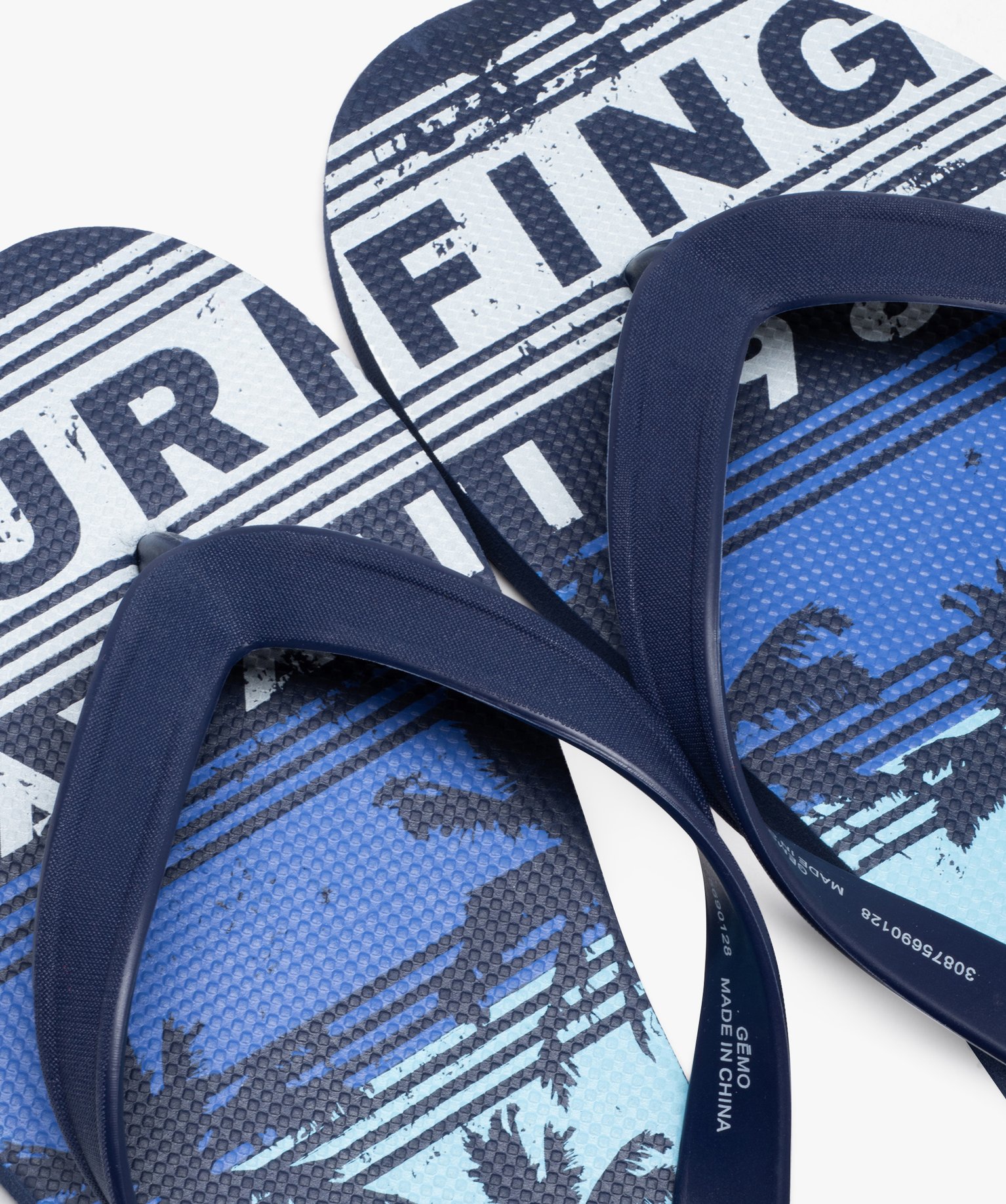 Tongs homme à brides lisses et semelle imprimée bleu