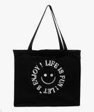 Le tote bag forme cabas incarne la simplicité et la praticité ! Fabriqué en toile souple et résistante dans de grandes dimensions, il vous permet d'emporter vos cours, vos livres, vos affaires de sport ou vos essentiels du quotidien. Ses deux anses plates en tissu vous permettent de le porter confortablement à l'épaule. Le design sobre de ce sac fourre-tout est rehaussé par un message positif et un smiley rigolo.