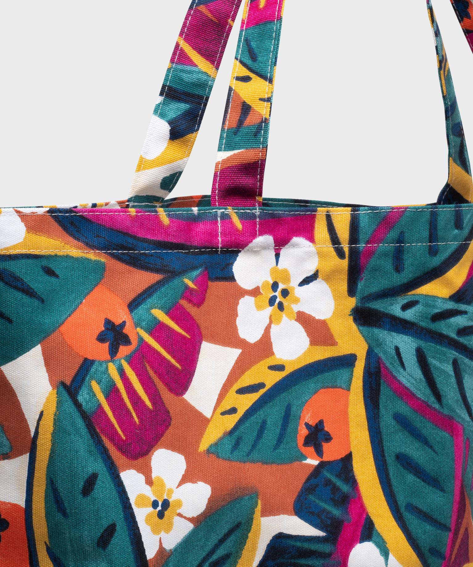 Très joli tote bag à motifs fleuris aux couleurs chatoyantes aux accents exotiques. Un sac qui apporte une touche de lumière dans le quotidien. Alternative éco-responsable aux sacs plastiques polluants, le tote bag en coton vous accompagne au quotidien, pour les journées shopping comme pour les courses alimentaires. Il s’utilise également comme sac de plage tout au long de l’été. Pratique, il se porte sur l’épaule grâce à ses grandes anses et se lave en machine.