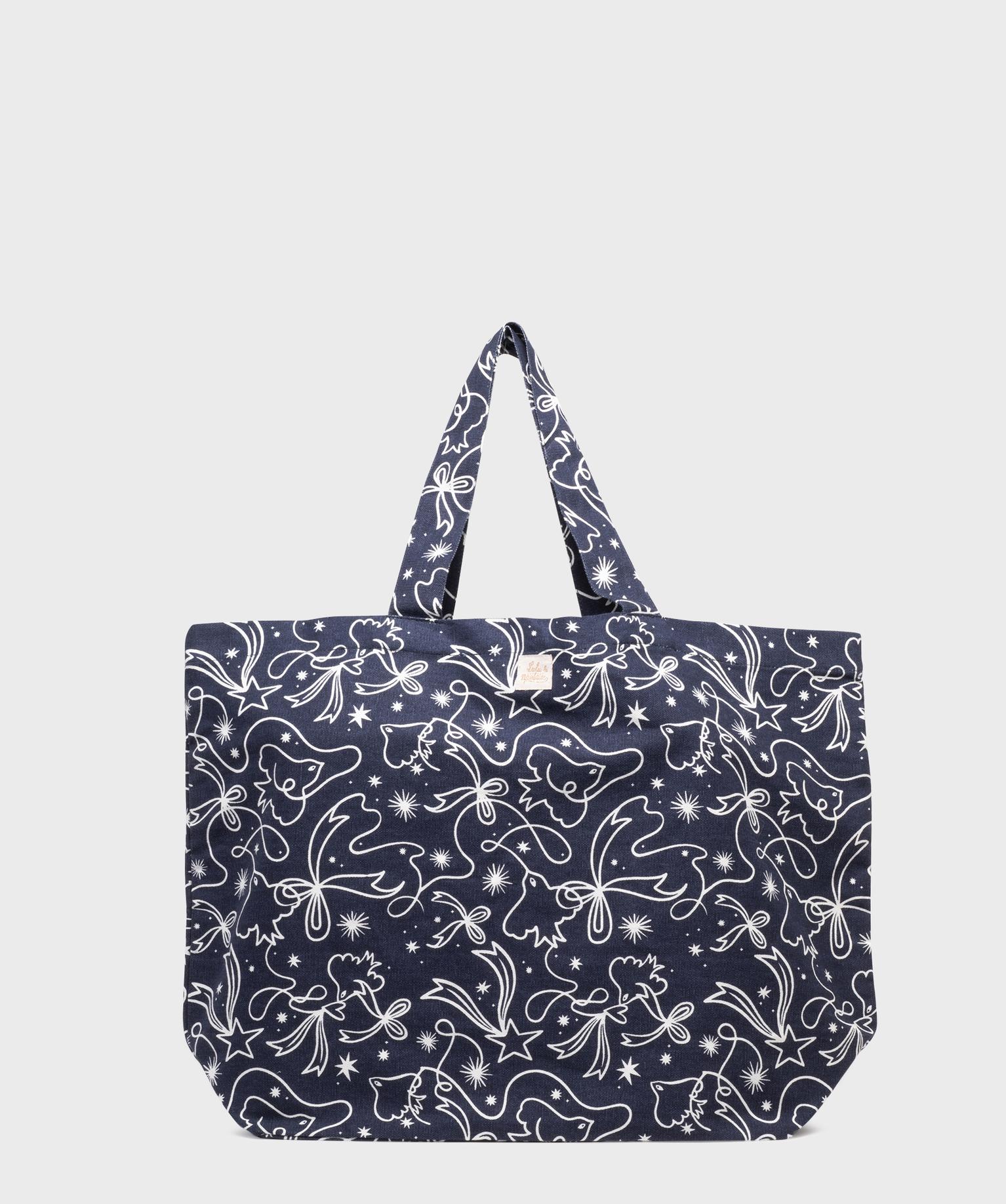 Tote bag grand format en coton imprimé - Gémo x Lulu la Nantaise bleu