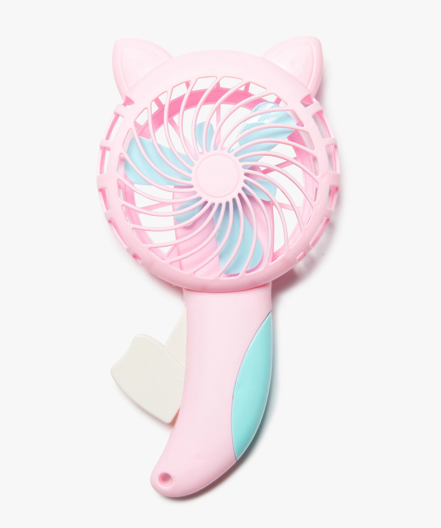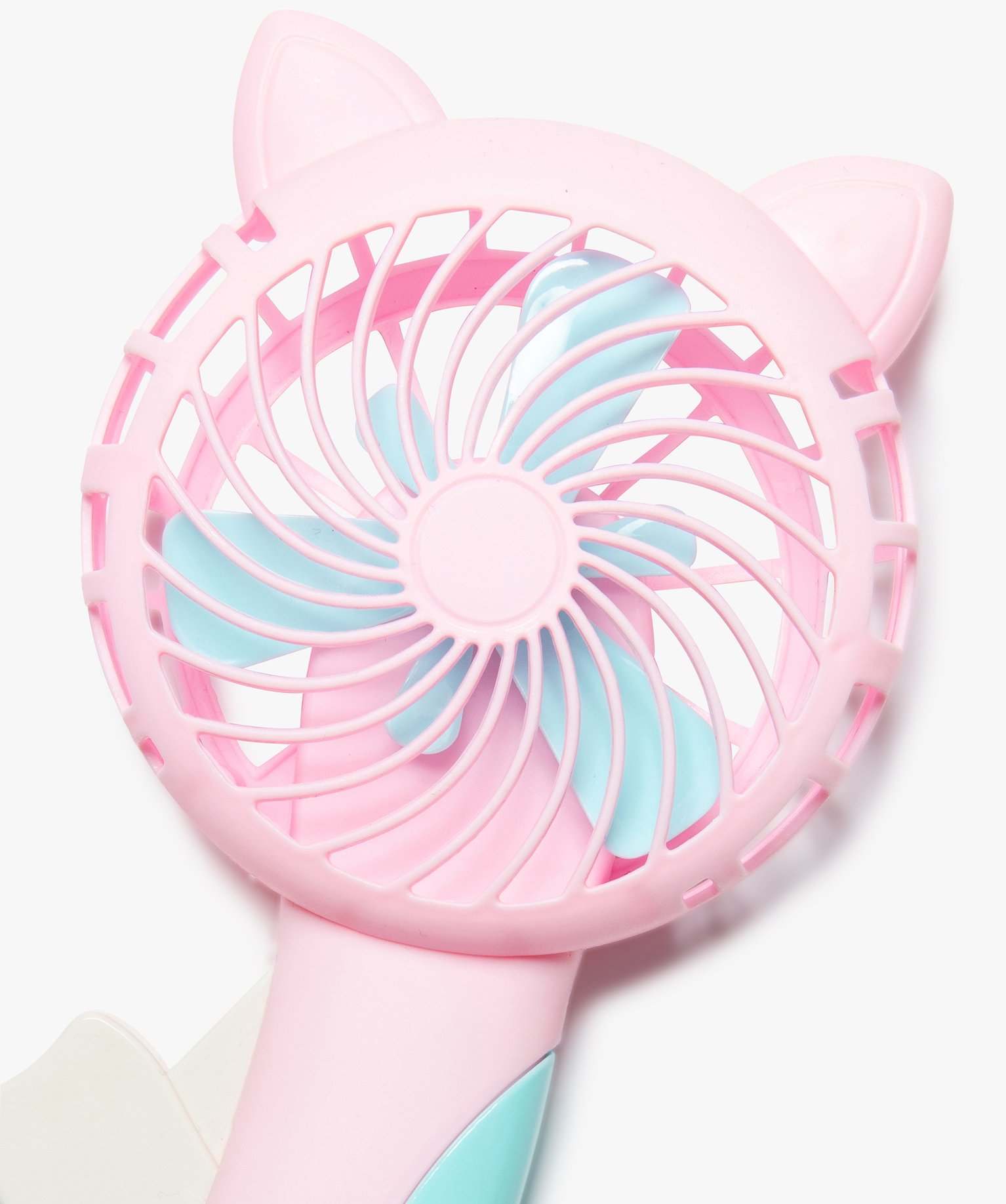 Pratique et mignon le ventilateur manuel aux teintes pastel et surmonté de deux petites oreilles de chat ! Le ventilateur à moulinet est facile d'utilisation. Doté de pales en plastique souple, il est sans risque de blessure.