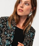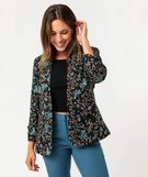 Une veste pour femme originale avec ses manches ¾ légèrement froncées dans le bas. Cette veste souple et légère, au look très élégant, est idéale pour accompagner une robe de soirée ou un ensemble pantalon et chemise. La veste de tailleur possède un grand col châle et des poches à rabat sur l’avant. Sans boutons, elle offre un porté ouvert chic et décontracté.