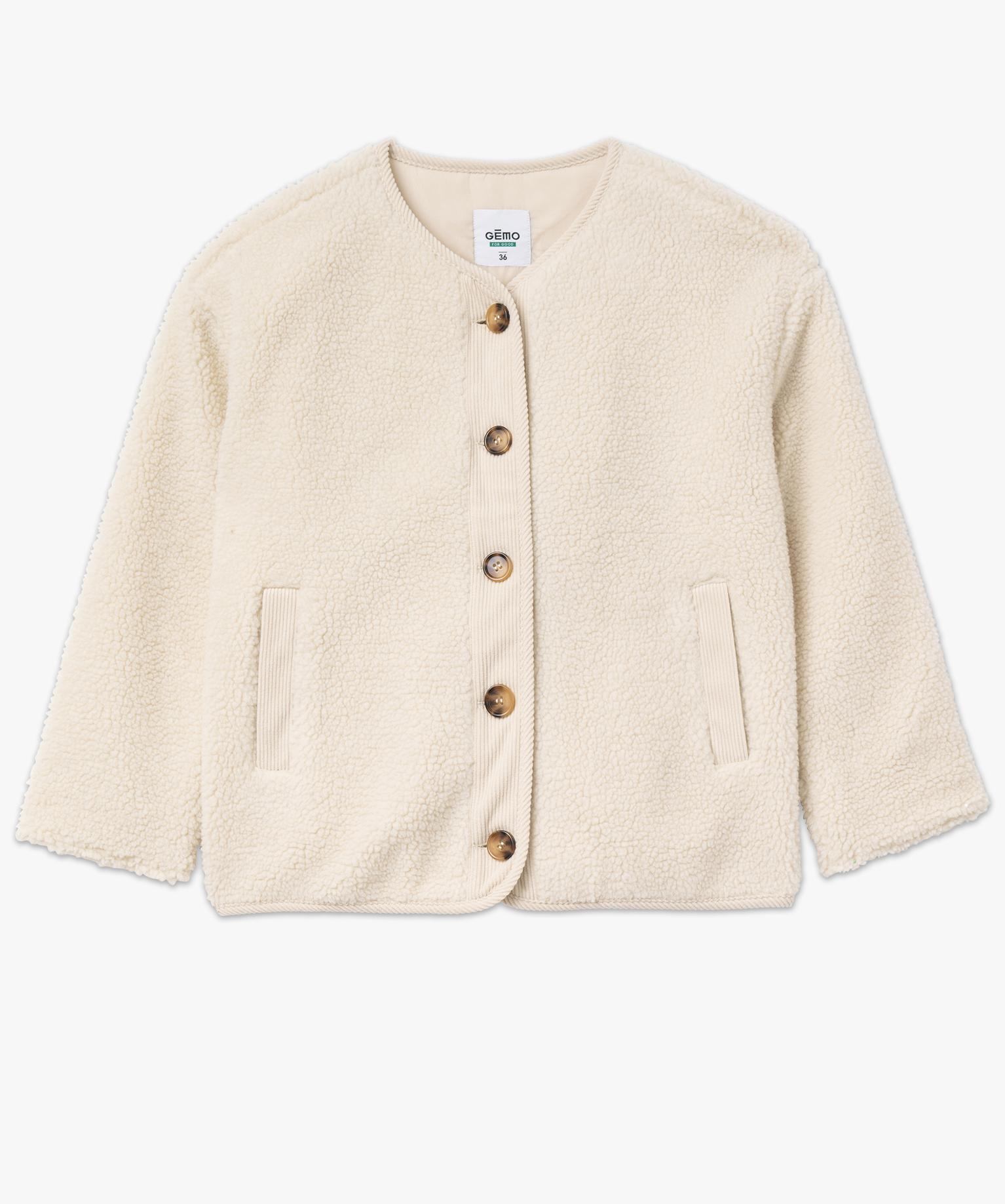 Adepte des looks cocooning ou bohèmes, laissez-vous séduire par cette veste pour femme en sherpa ! Une veste ample, confortable, sans col, avec de gros boutons écaille imitation et des poches pour glisser vos mains et vos essentiels. On note la finition en velours côtelé au col, aux poignet, dans le bas, à l'entrée des poches et au niveau de la boutonnière. Sa coupe intemporelle mixée à sa matière originale en fait une pièce signature, idéale pour réchauffer tous vos looks d'hiver décontractés. Finition ton sur ton. Doublure intégrale.