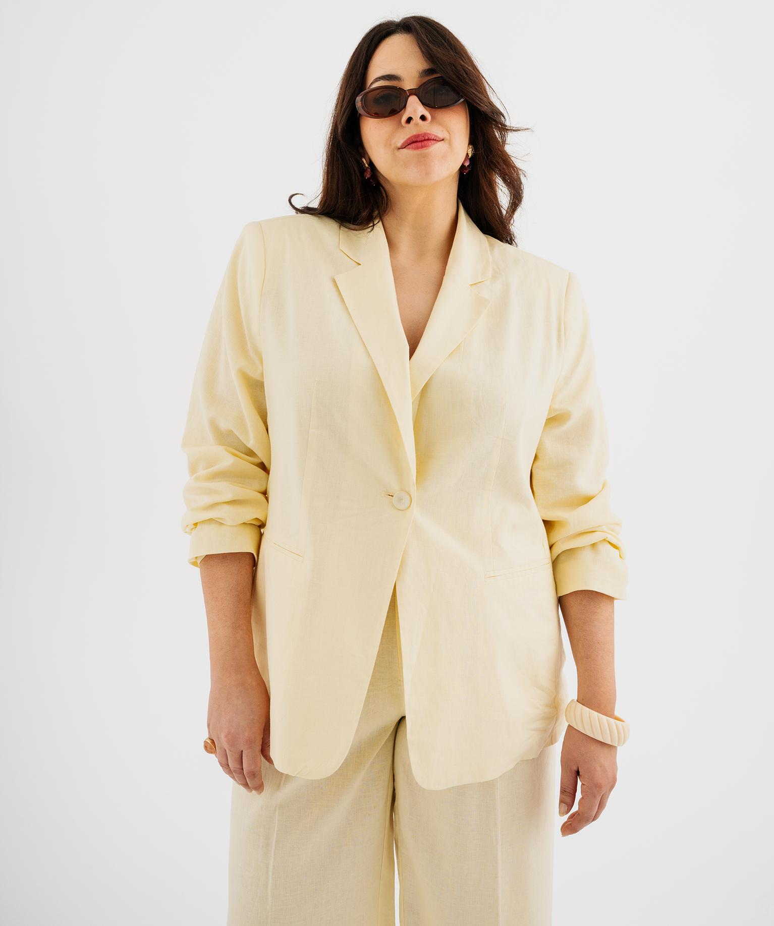 Veste blazer en viscose et lin femme grande taille jaune clair
