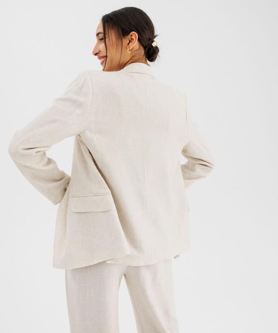 La veste blazer se réinvente pour l'été grâce à une composition élégante de viscose et lin, qui lui confère des reflets irisés subtils. Cette veste femme s'inspire des codes classiques de la veste traditionnelle avec son grand col cranté, sa coupe droite et sa fermeture par un bouton. Idéale pour varier les styles, elle se porte aussi bien avec une chemise et le gilet sans manches assorti pour une allure sophistiquée, qu'avec un tee-shirt pour un look plus décontracté. Une veste de tailleur à petit prix, parfaite pour être élégante sans se ruiner ! Deux poches à rabat.
