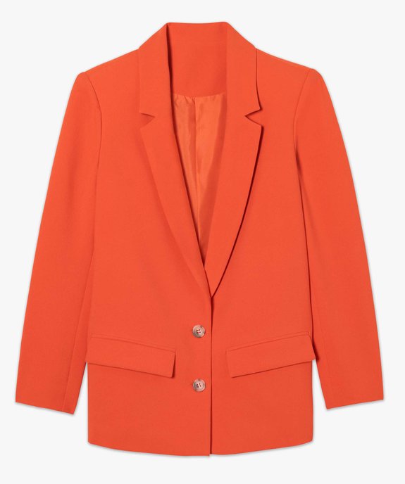 Incontournable du vestiaire féminin, la veste blazer s’affiche cette saison dans un coloris pétillant pour illuminer tous les looks. Une veste femme à la coupe classique avec grand col et fermeture deux boutons, avec deux poches à rabat. Entièrement doublée, elle offre beaucoup de confort et un tomber impeccable. Cette veste se porte avec le pantalon assorti, mais aussi avec un jean, un pantalon en toile ou une jupe droite.