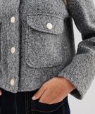L'élégance de l'esprit couture au quotidien, avec la veste courte en maille bouclée ! Chaleureuse et raffinée, cette veste courte pour femme est un vrai bijou mode. Son col rond, ses poches plaquées à rabat et sa fermeture pressionnée dorée lui donnent un charme résolument chic. Parfaite avec un pantalon de tailleur taille haute pour un look sophistiqué, ou portée ouverte sur une robe pour une touche élégante décontractée. Une pièce chaude et douillette, idéale pour sublimer vos silhouettes d'automne-hiver.
