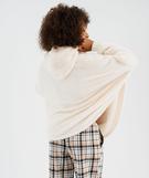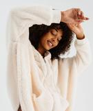 Veste d'intérieur à capuche en fourrure imitation femme ecru