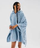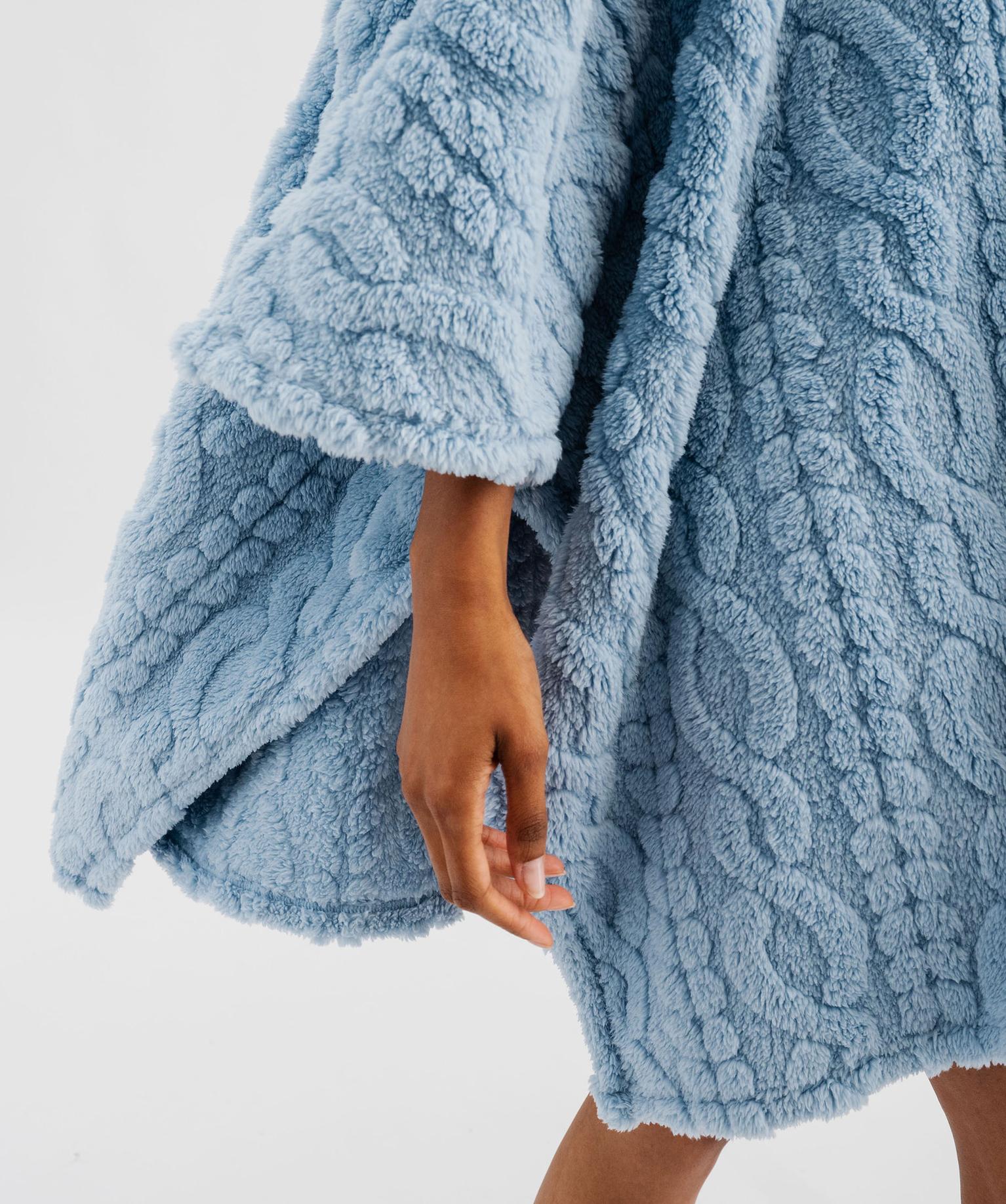 Veste d’intérieur à capuche forme poncho femme bleu