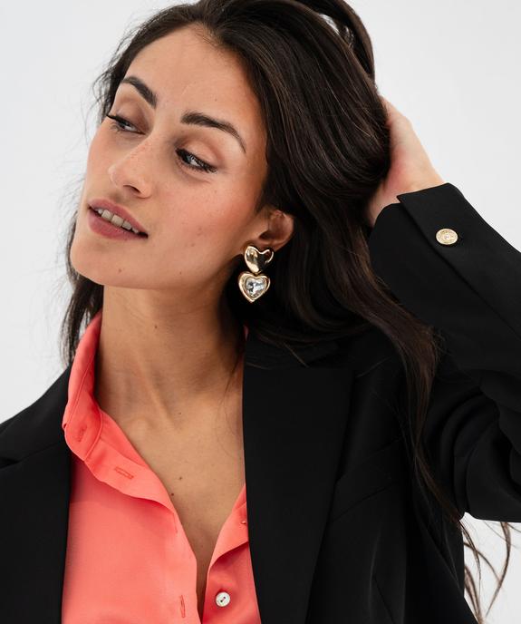 Essentiel du vestiaire féminin pour composer des looks élégants, la veste blazer. Dotée d’une coupe légèrement cintrée, d’un col tailleur avec revers crantés et d’épaulettes, cette veste femme met la silhouette en valeur. Elle se ferme à l’aide d’un joli bouton en métal décoré d’un blason. Une veste de tailleur à porter avec un pantalon chic ou une jupe crayon pour une allure sophistiquée, mais aussi avec un jean pour un look casual chic au quotidien.